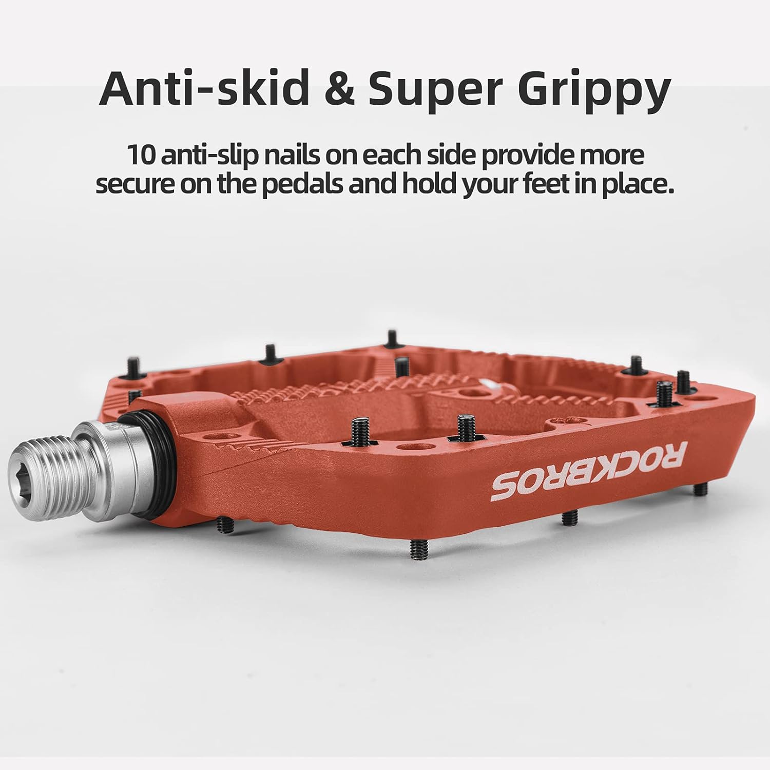 - 【ANTI-RUTSCH-NAGEL】Anders als gewöhnliche Pedale sind diese Fahrrad Pedale mit rutschfesten Mustern überzogen. Bis zu 10 Anti-Rutsch-Nägel auf jeder Seite sorgen für mehr Sicherheit auf den Pedalen.