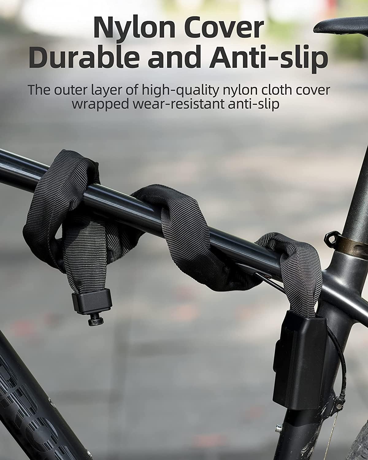 - Verwendung: Die Schlosskette ist 97 cm lang und ist sehr praktisch. Das Kettenschloss ist für die meisten Fahrräder, E-Bike und Motorräder geeignet und kann sogar mehrere Fahrräder einschliessen. Wenn es nicht benötigt wird, kann das Fahrradschloss