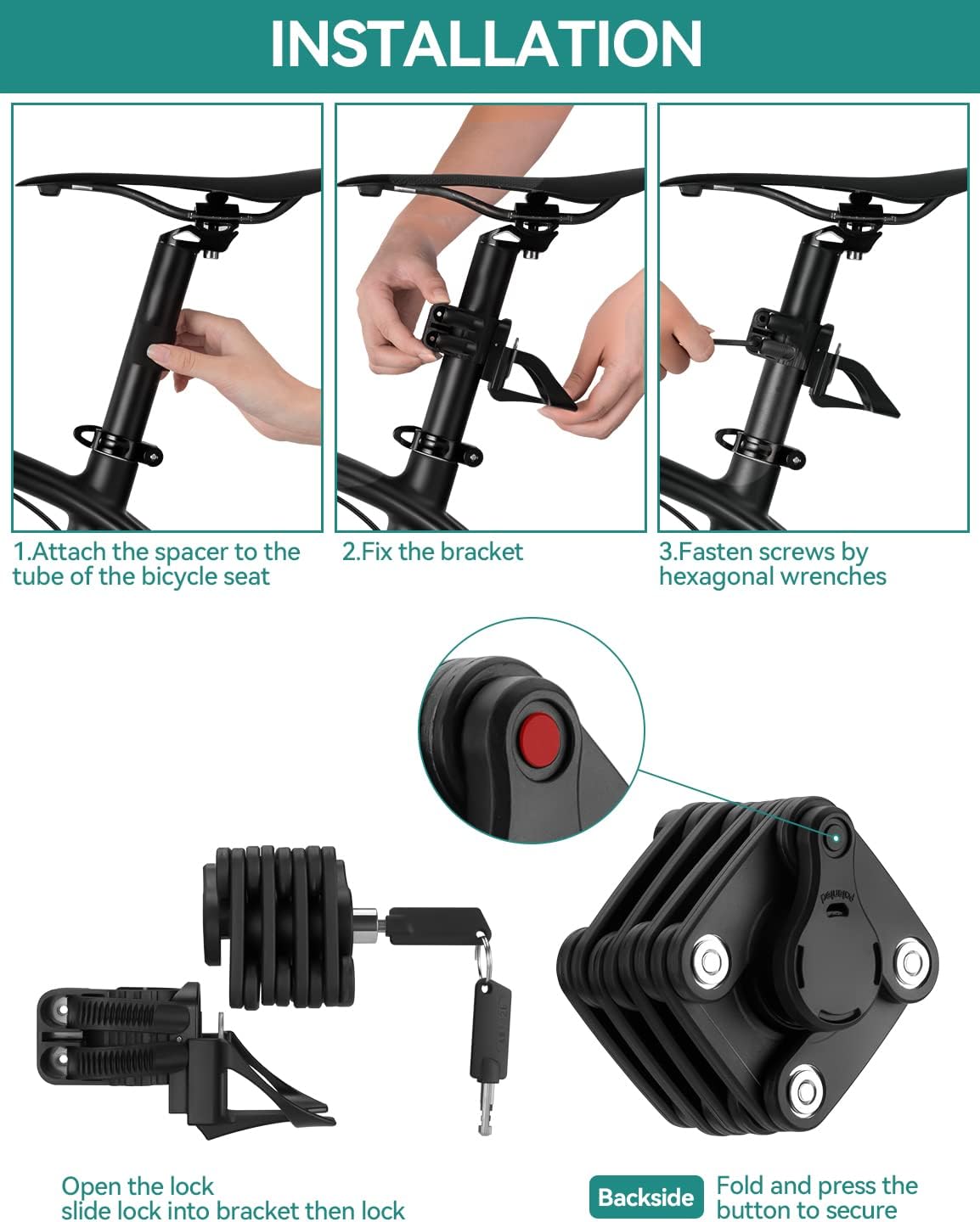 - 🟤 Einfache Installation: Schlossgewicht: 519g. Mit der praktischer Halterung kann dieser Fahrrad Schloss sehr schnell und einfach an Ihrem Fahrrad montieren und aufzunehmen.