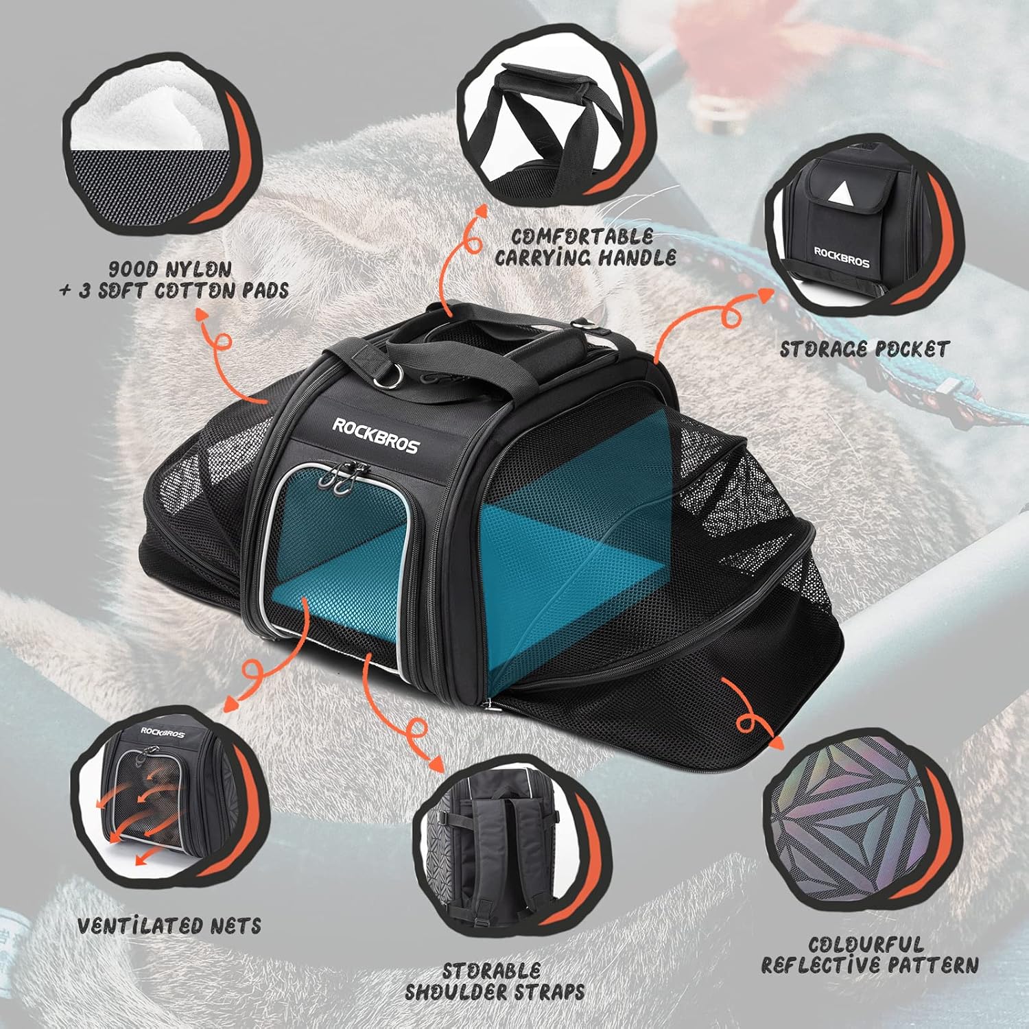 ROCKBROS Hundetasche Tragetasche Hund & Katze Hundebox Gepäckträgertasche Faltbar Tragbar Atmungsakt