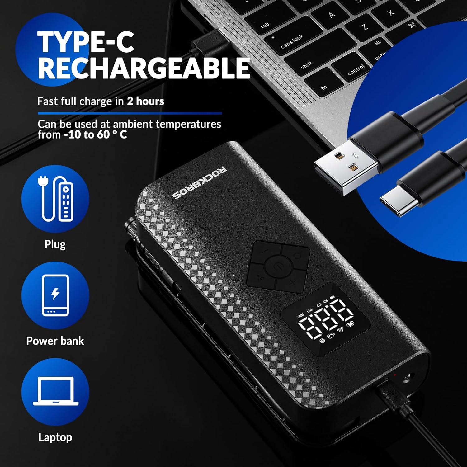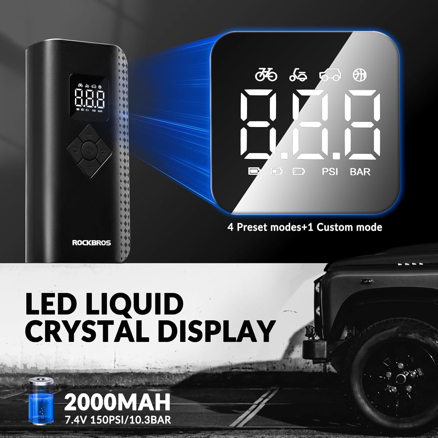 - 【Hochdruck & Sicher】ROCKBROS tragbare elektronische Luftpumpe bietet einen maximalen Druck von 150 PSI/10,3 bar. Mit der Pumpe können Sie einen Autoreifen in weniger als 12 Minuten vollständig aufpumpen, und einen Fahrradreifen in 3 Minuten