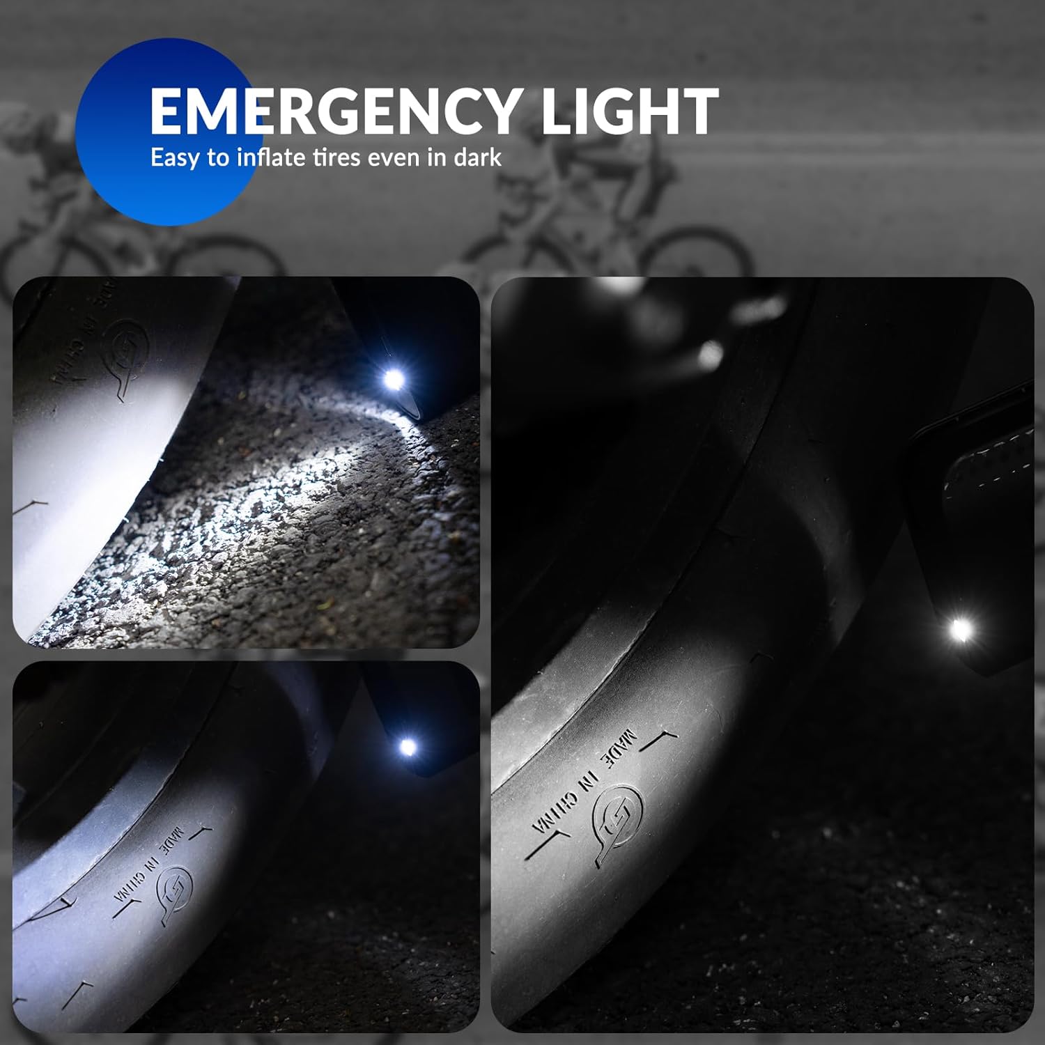 - 【Universell & Kompatibel】Die Verpackung enthält Presta und Schrader Ventile und Luftnadel. Deshalb eignet sich der Luftkompressor ideal für Autos, Motorräder, Fahrräder, Elektroroller, Bälle, Schwimmringe usw. Die Oberseite der Luftpumpe ist mit