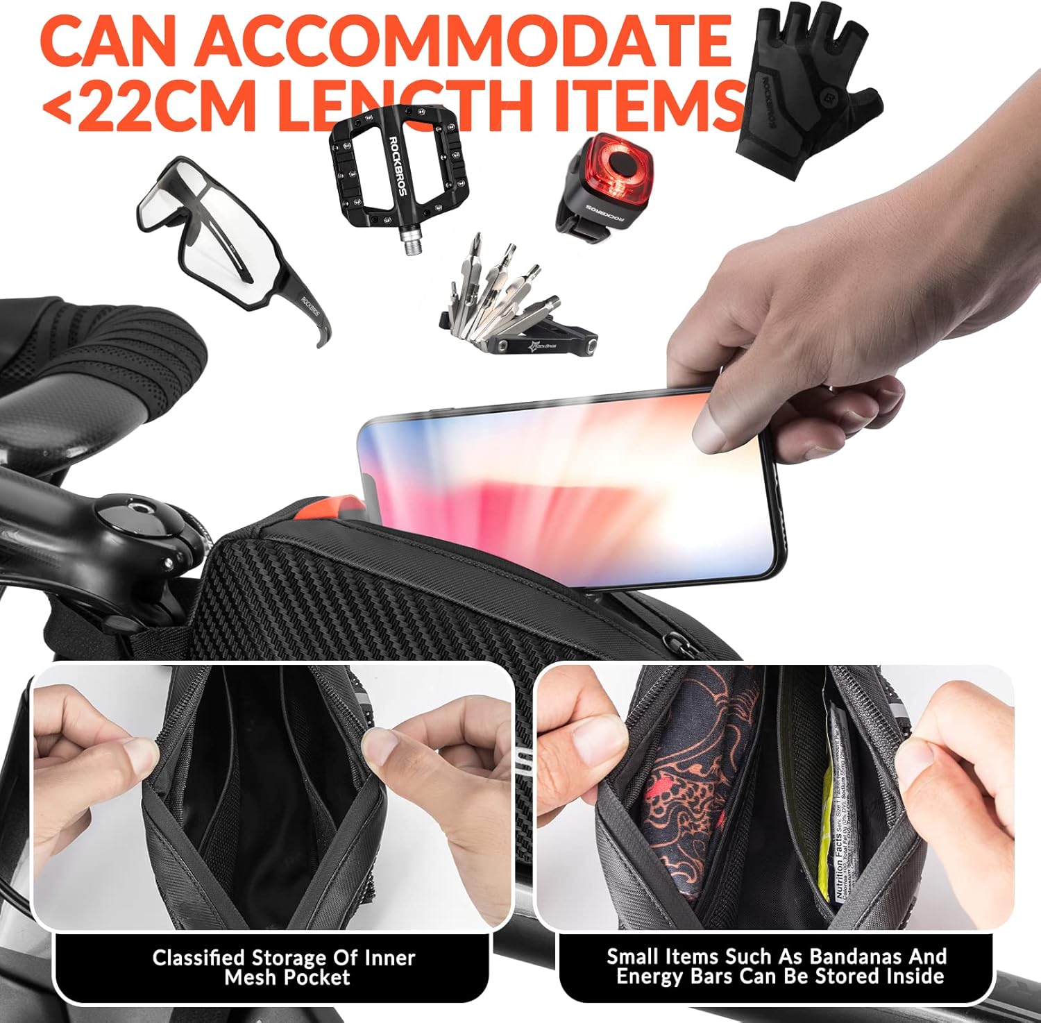 - 【PERFEKTE KAPAZITÄT】 22*10*5,5cm. Ca. 1L Kapazität. Diese Oberohrtasche bietet genug Platz für Schlüssel, Werkzeug, Minipumpe, Reifen usw. Auf einer Seite befindet sich eine elastische Kordel, in der Sie einige Gegenstände aufbewahren können.