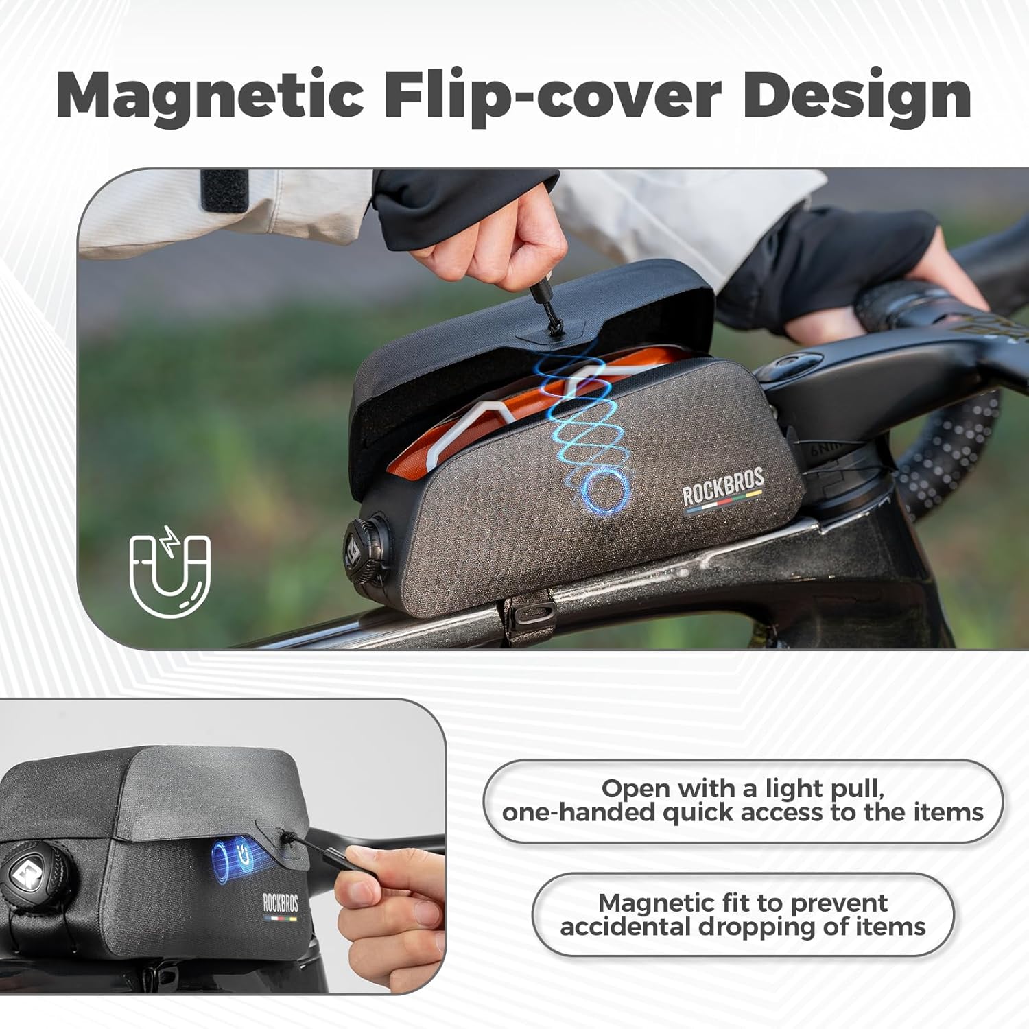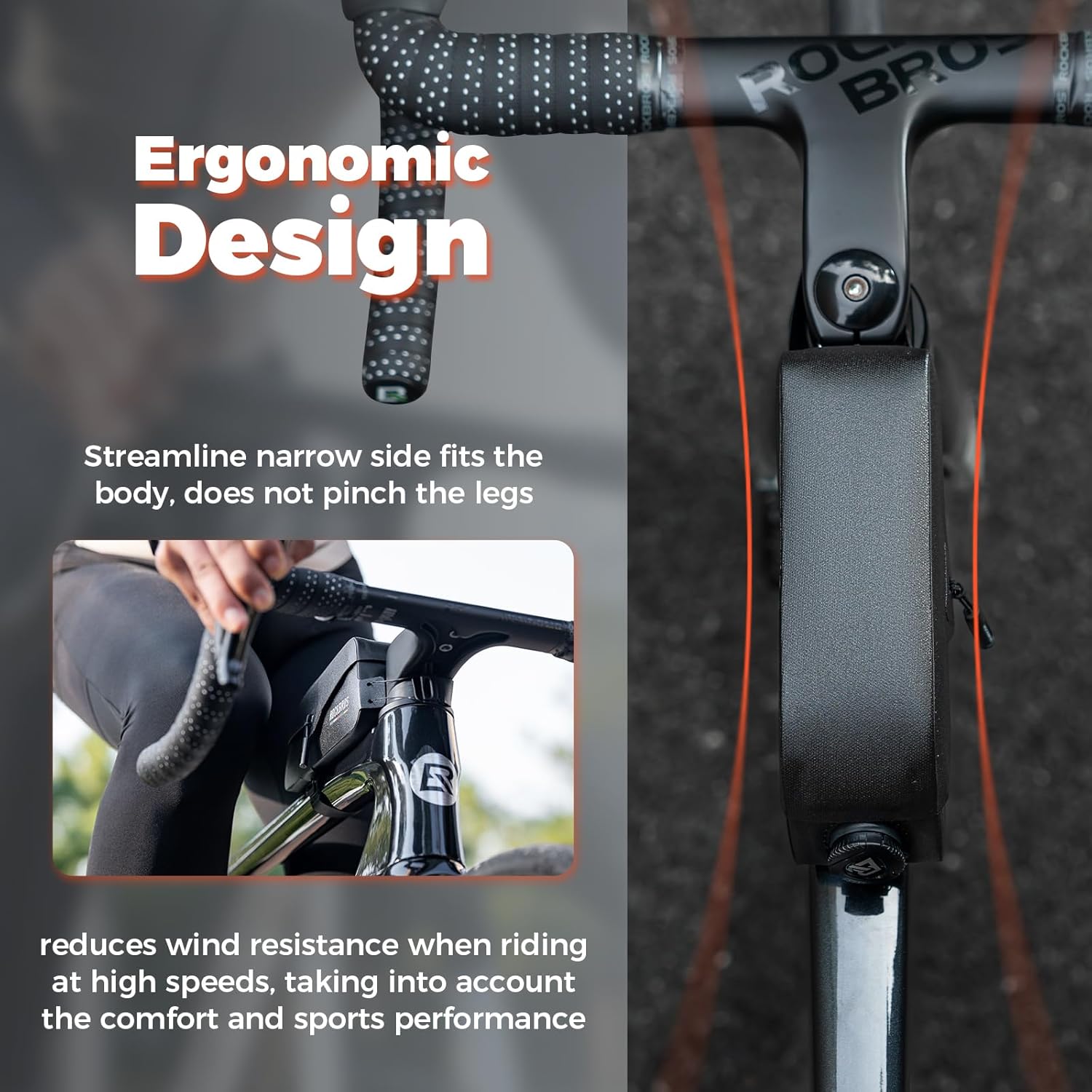 - STROMLINIENFÖRMIGES SCHMALES DESIGN: Der stromlinienförmige, schmale Rand der Tasche passt sich dem Fahrradkörper an, ohne die Beine einzuklemmen oder die Pedale zu blockieren, und reduziert den Windwiderstand beim Fahren mit hohen Geschwindigkeiten,