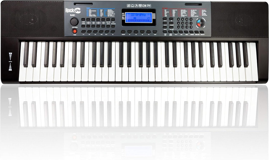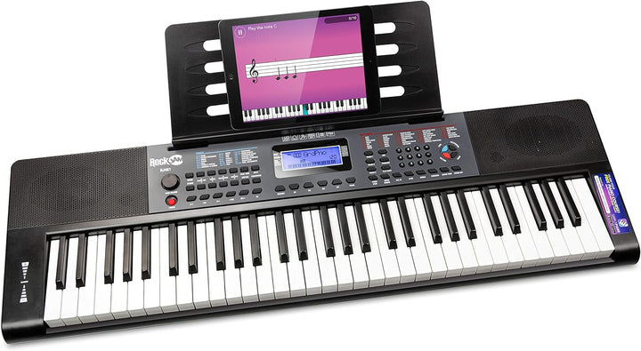 - Musikalische Bildung: Für Anfänger, die ihre ersten Schritte auf eine musikalische Reise machen, verfügt ein RockJam Keyboard Piano über zwei eingebaute Unterrichtsmodi, exklusive Simply Piano App-Inhalte (iOS und Android) und Noten-Aufkleber