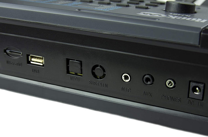 - Moderne Funktionen: Dieses RockJam DigitalKlavier kombiniert 61 Perkussionsinstrumente, 300 Rhythmen, 300 Töne, Pitch Bend, 118 Aufnahme- und Wiedergabefunktionen, Micro SD, Aux In und USB-Eingänge