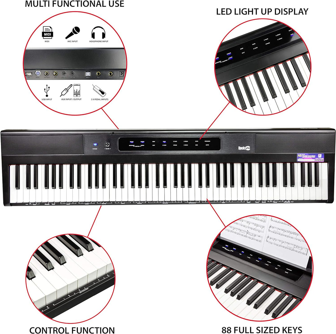 - Dieses RockJam 88 digitale Klavier Keyboard verfügt über 88 halbgewichtete, geschwindigkeitsabhängige Tasten in voller Grösse, die das Gefühl eines echten Klaviers genau nachbilden