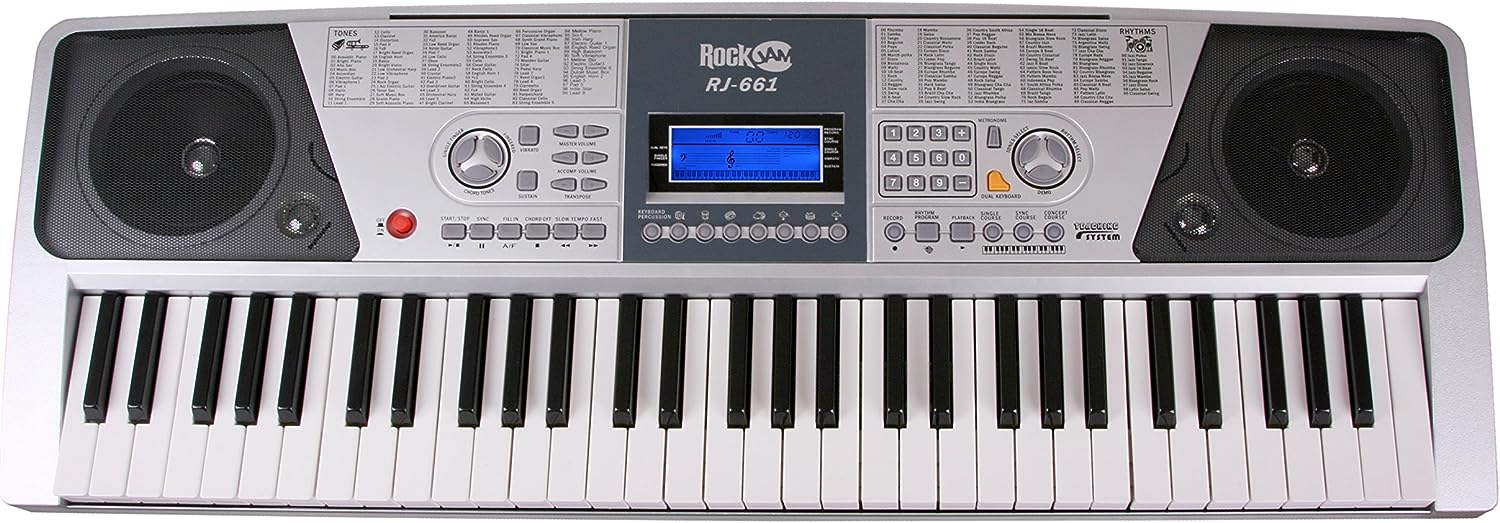 - Produkt 1: 61-Tasten Keyboard in voller Grösse, 50 Demo Songs, Dual Voice, Tempo, Transpose, Sustain, Vibrato, Metronom, 7-Panel Perkussion
