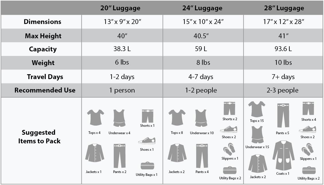 • Handgepäck aufrecht: 55,9 x 33 cm. 12,7 x 22,9 cm (mit Rädern)