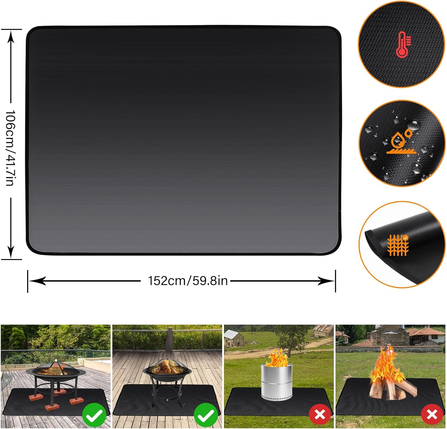 - đ„ăHochwertige Feuerfeste MatteăPerfekte Passform fĂŒr Feuerstellen,Gasgrills mit flacher Oberseite,und Holzkohlegrills aller Formen von.Um die beste Passform fĂŒr Ihren Grill zu gewĂ€hrleisten,messen Sie bitte die Breite und Tiefe von Ihren