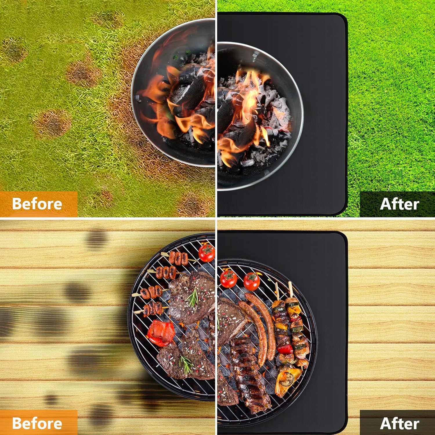 - đ„ăSchĂŒtzt Ihr Deck und Ihren Rasenă HolzkohlebrĂ€nde können Deck und Rasen irreparabel beschĂ€digen. Eine feuerfeste, hitzebestĂ€ndige Feuerstellenmatte ist perfekt zum Schutz Ihrer Terrasse, Ihres Rasens, Ihrer Verbundwerkstoffdiele, Ihres