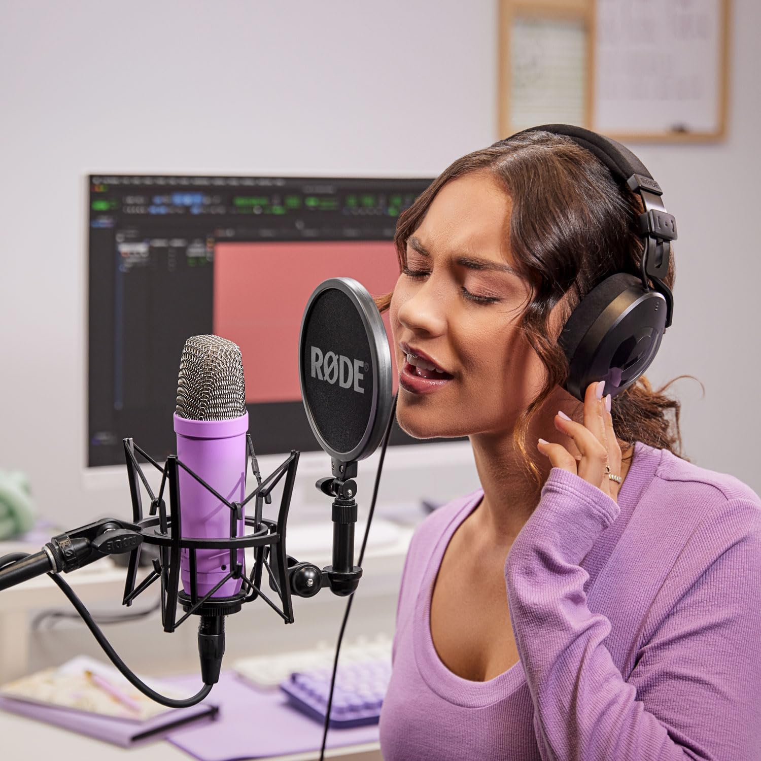 Variante: Violett Mikrofon Lila / Stativ Weiß