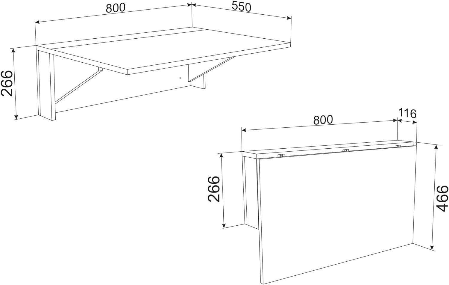 - Tischplattengrösse: ausgeklappt 80x55 cm, zugeklappt 80x11,6 cm