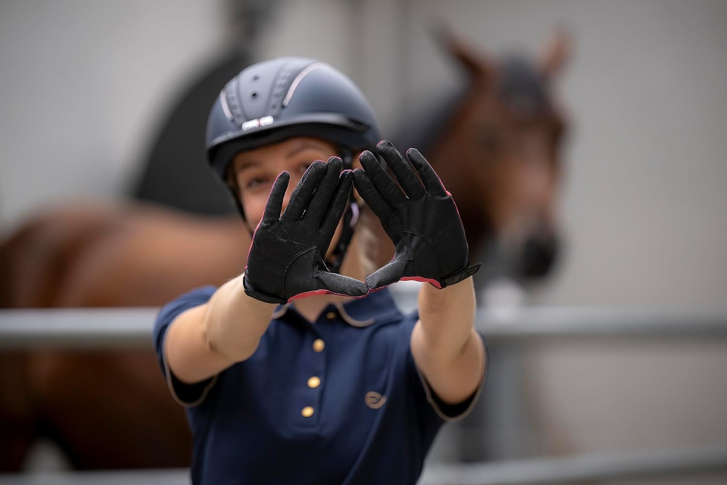 - Sicherer Griff: Die Innenhand ist aus weichem, dünnem PU-Material gefertigt, das einen sicheren Griff am Zügel ermöglicht, ohne die Taktilität und Präzision zu beeinträchtigen.