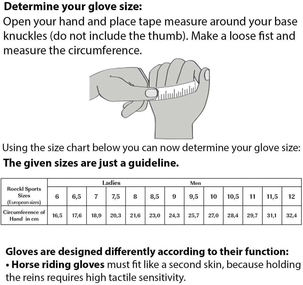 - Sicherer Griff: Die Innenhand ist mit zahllosen ROECKL-Logos aufwändig silikonisiert, was einen sicheren Griff am Zügel ermöglicht.