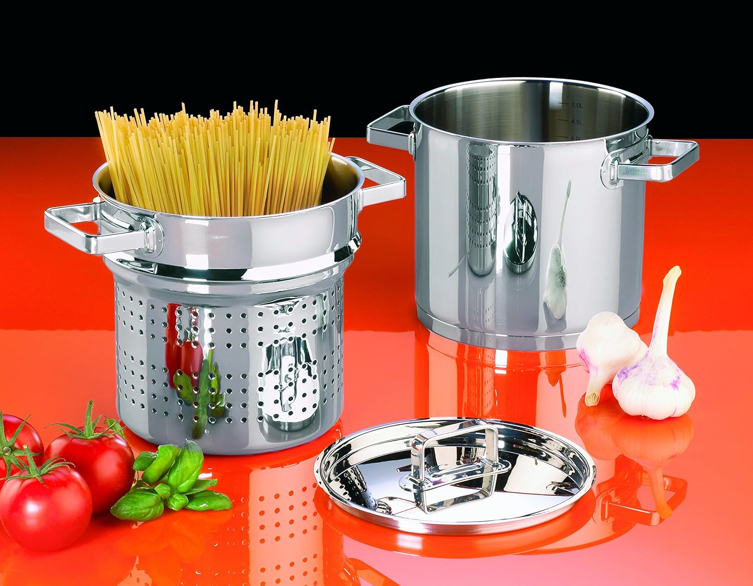 - Ausgestattet wurde der Spagettitopf mit einem induktionsgeeignetem, energiesparendem Aluminium-Kapselboden