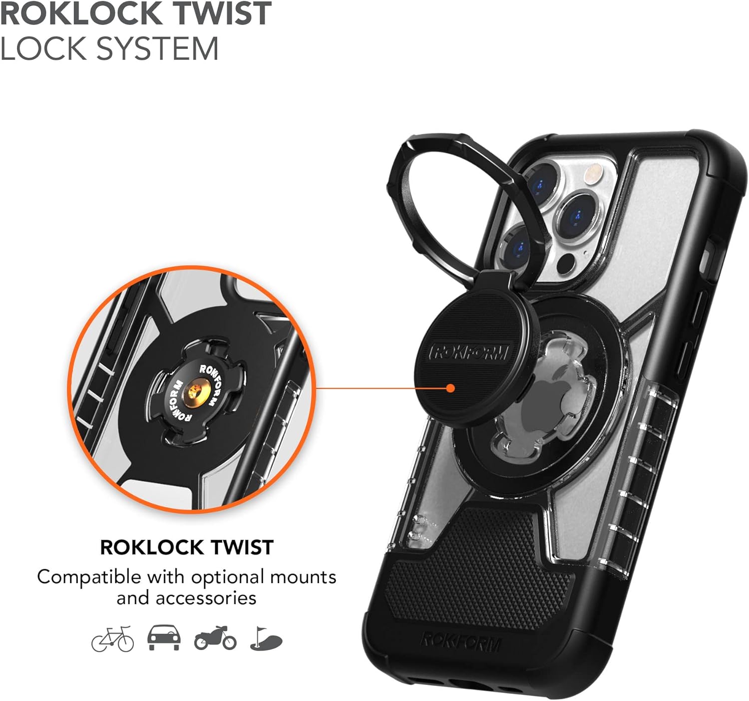 - Drehverschluss: Verwenden Sie das integrierte RokLock Twist Lock System, um diese iPhone 13 Pro Hülle an Ihrem Motorrad, UTV/ATV, Fahrrad oder Kinderwagen zu montieren. Alle Halterungen sind separat erhältlich.