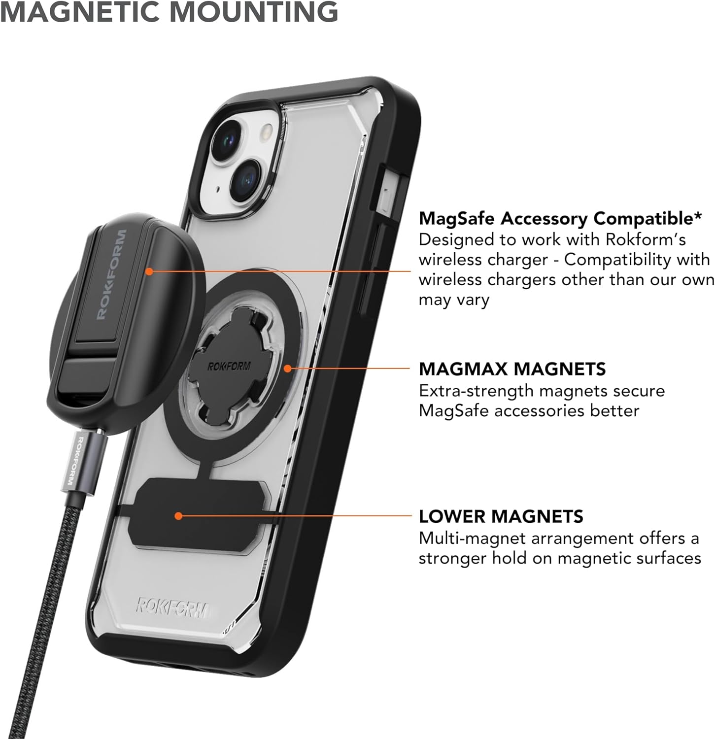 Rokform - iPhone 15 Plus Hülle, Crystal Series, magnetische klare iPhone 15 Plus Hülle mit RokLock D