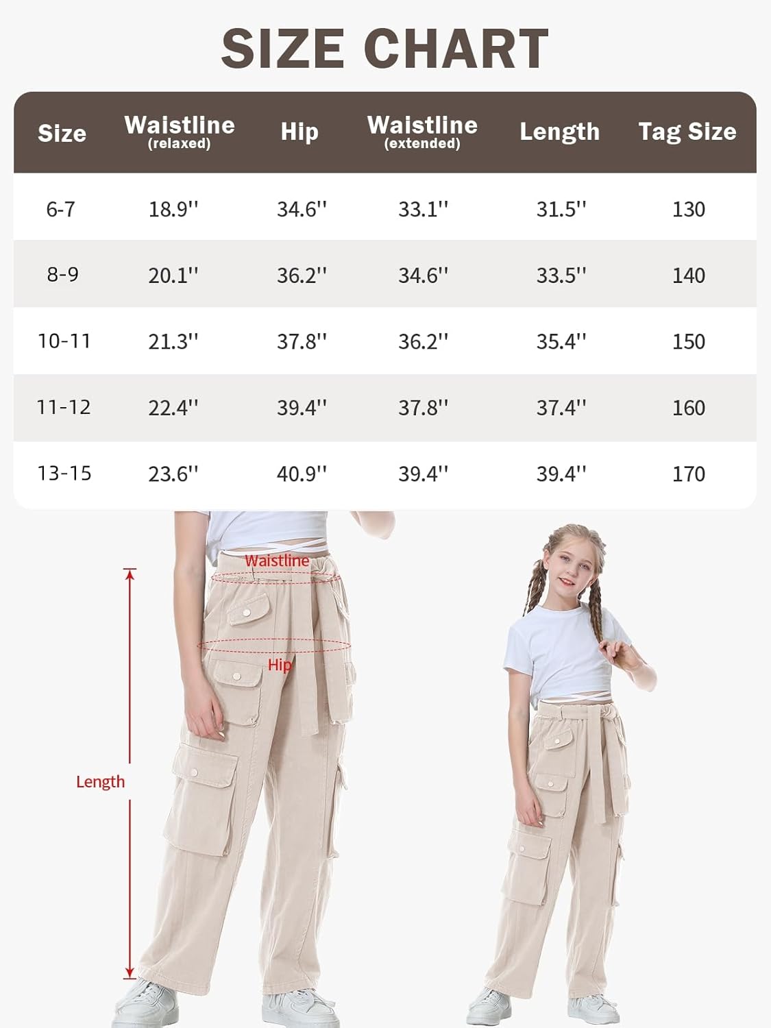• Grösse: Für 6-15 Jahre Mädchen. Die Cargo-Jeans-Langhose ist locker geschnitten. Wenn die Länge für Ihre Kinder zu lang ist, kann die Manschette zum Tragen auch hochgerollt werden. Bitte beachten Sie vor der Bestellung die Grössenangaben in der