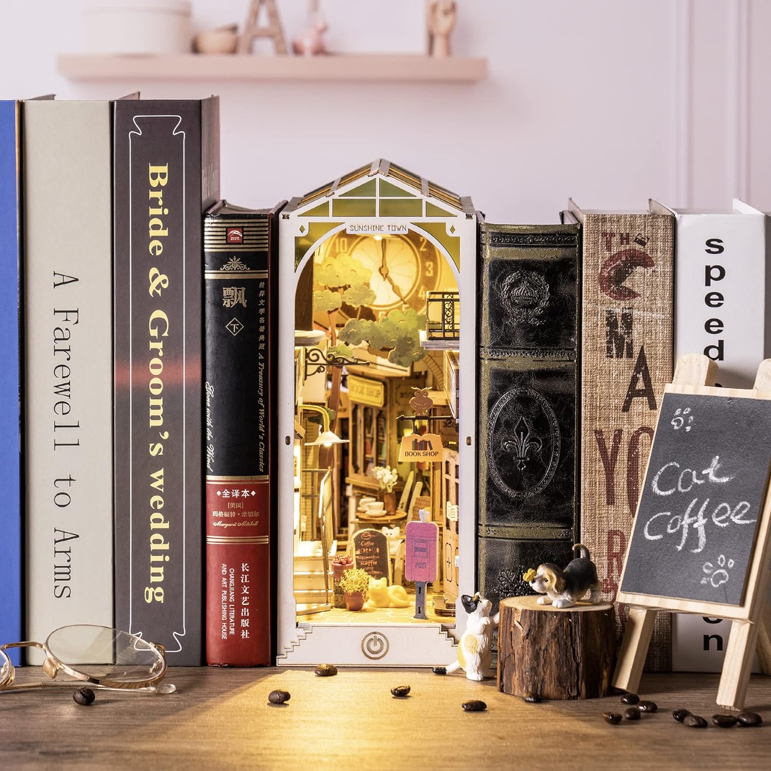 - 【LED Book Nook Kit variiert in Themen】Befreien Sie Ihren Geist nach einem ganzen Arbeits- oder Studientag, stellen Sie sich vor, dass Sie plötzlich Ihre magischen Fähigkeiten im "Magic House" (Magisches Haus) entfesseln und eine unvergessliche