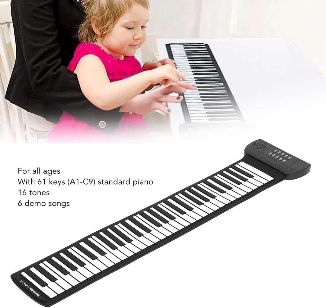 - 61 TASTEN STANDARD PIANO: 61 Tasten Handrollpiano für alle Altersgruppen mit 61 Tasten (A1‑C9) Standardklavier, 16 Tönen, 6 Demosongs.