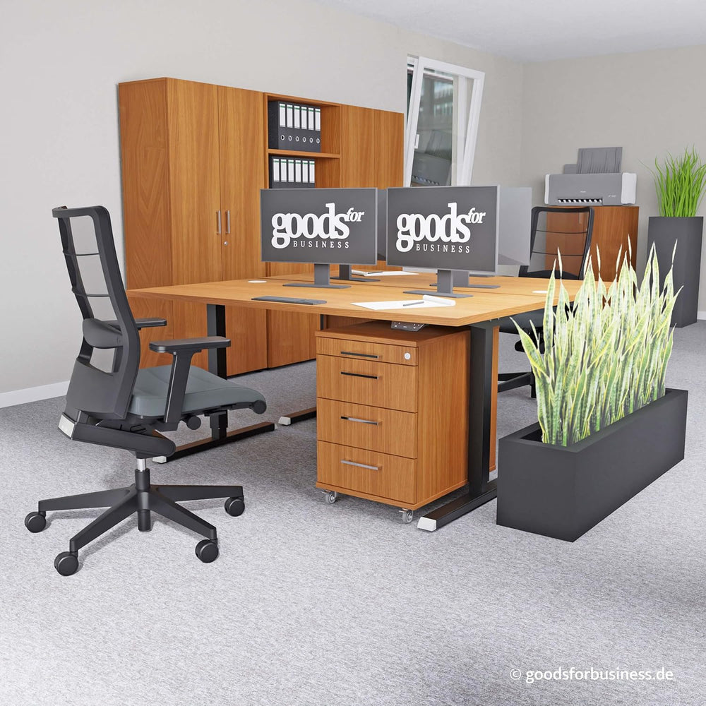 - Schreibtischschrank mit 4 leichtgängigen 50 mm Gummirollen (2 davon gebremst)