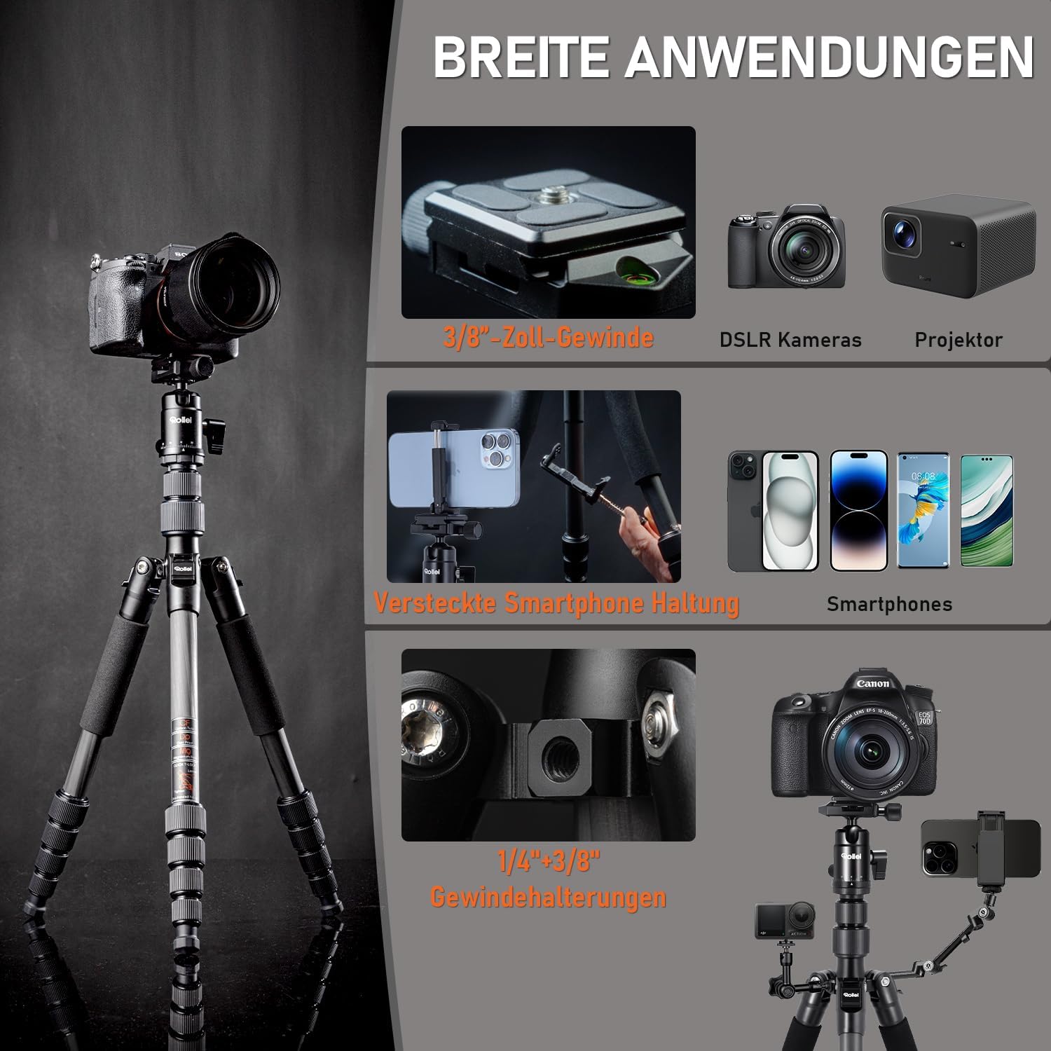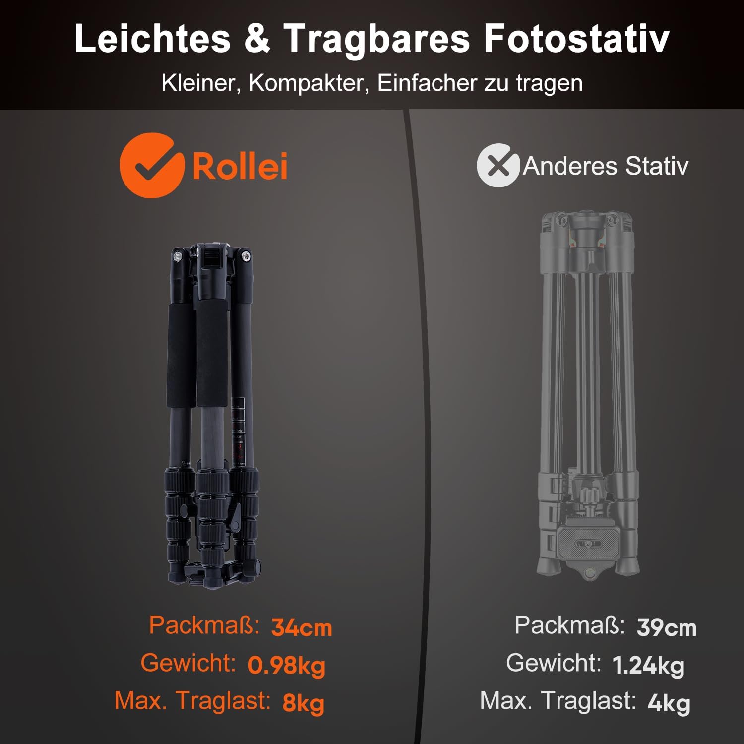 - ✅ Das Rollei Compact Traveler No.1 ist speziell für die Reise- und Outdoor-Fotografie konzipiert und mit 8kg Tragkraft auch für DSLR-Kameras geeignet