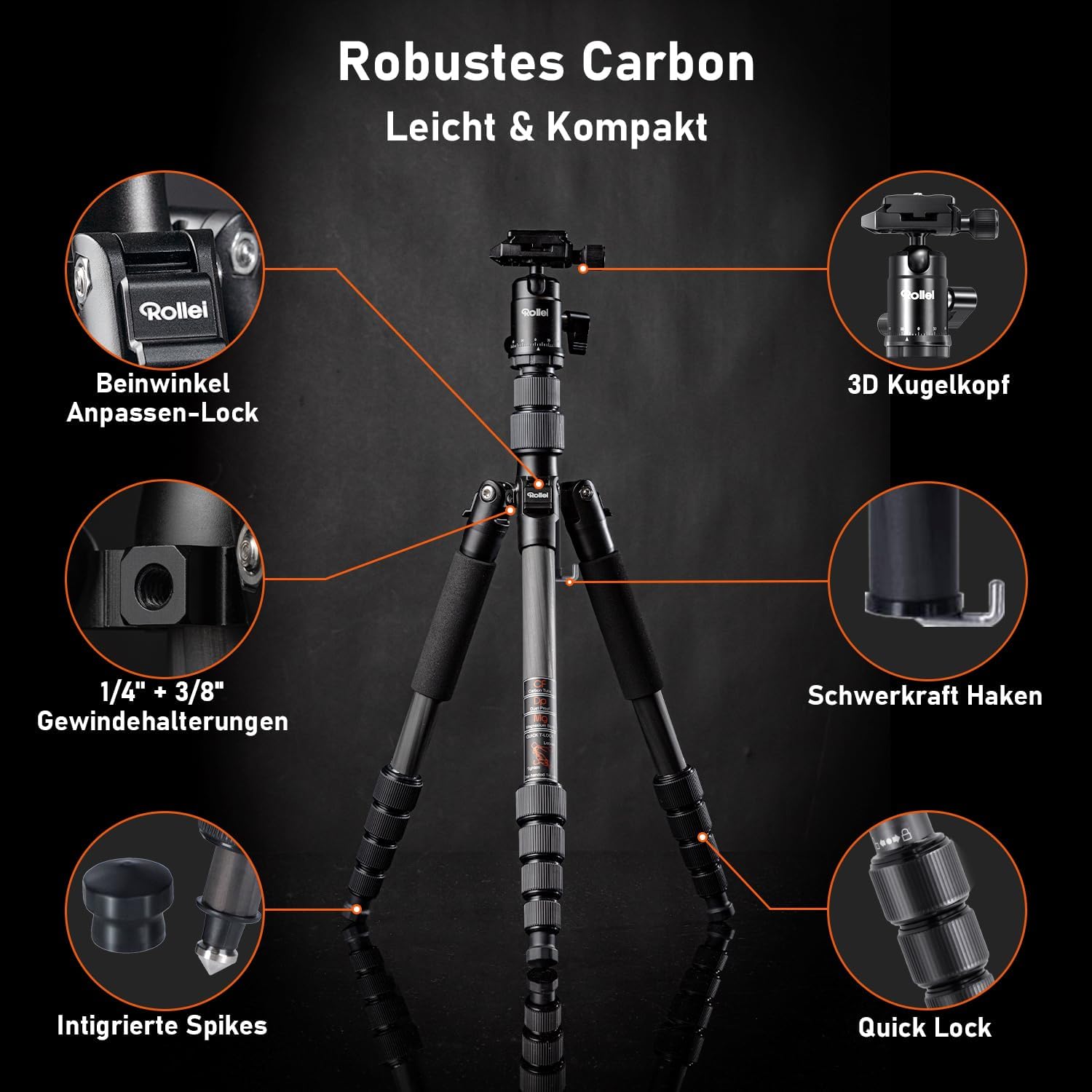 - ✅ Lieferumfang: Rollei Compact Traveler No.1 Carbon mit Kugelkopf, Arca Swiss Schnellwechselplatte, Stativtasche und Bedienungsanleitung