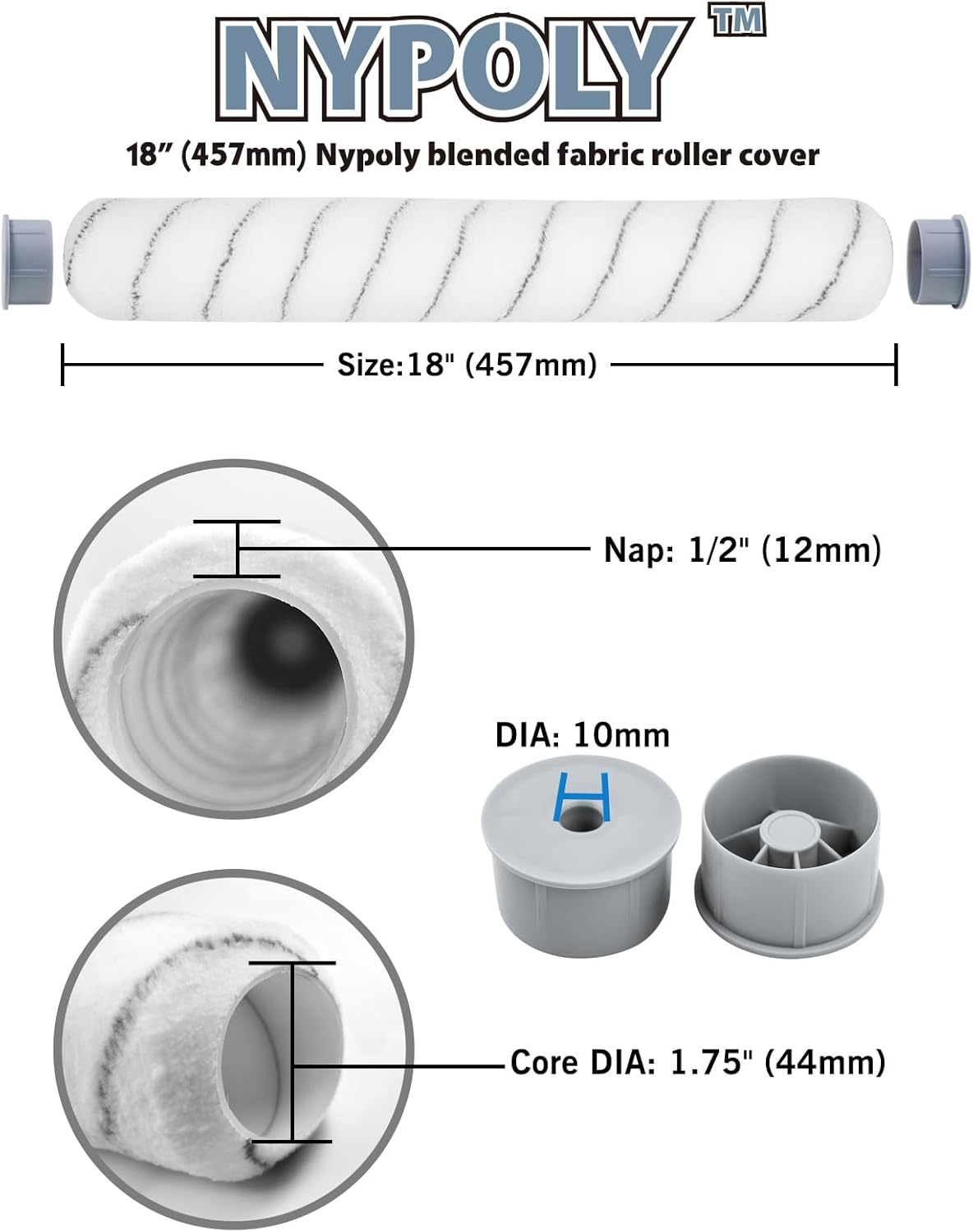 ROLLINGDOG 45,7 cm Farbroller Abdeckung - Farbrollerhüllen Farbwalzenhülse,12 mm mittelgrosses Nicke
