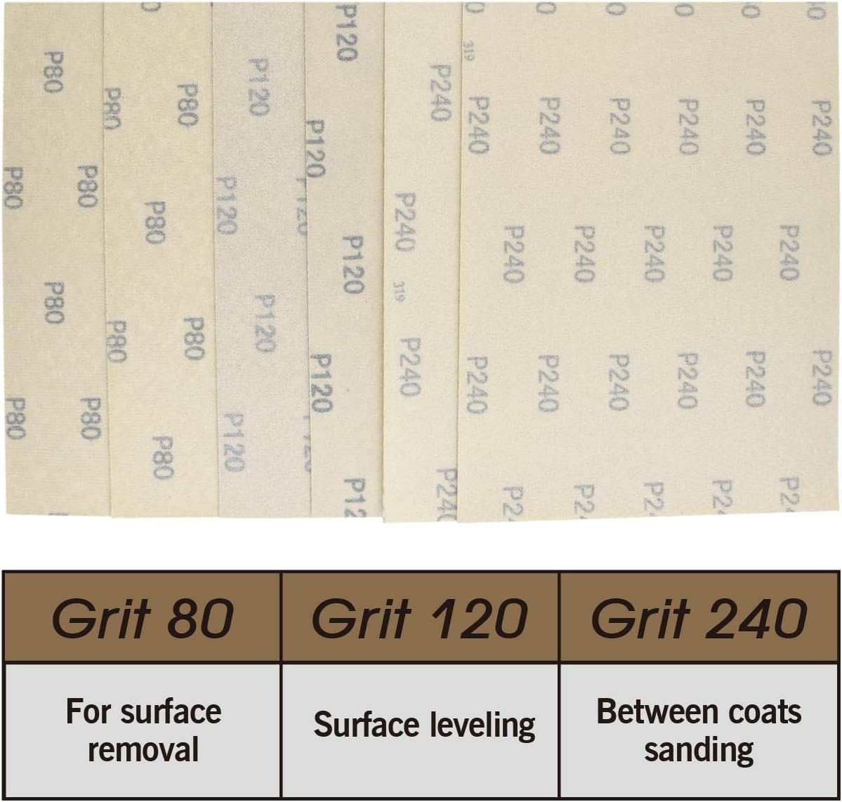 - Schleifpapier im Lieferumfang enthalten: 6 Schleifpapier in einer Reihe von Körnungen, am besten geeignet für Trockenbau-Schleifen (2 Stück Körnung 80, 120, 240)