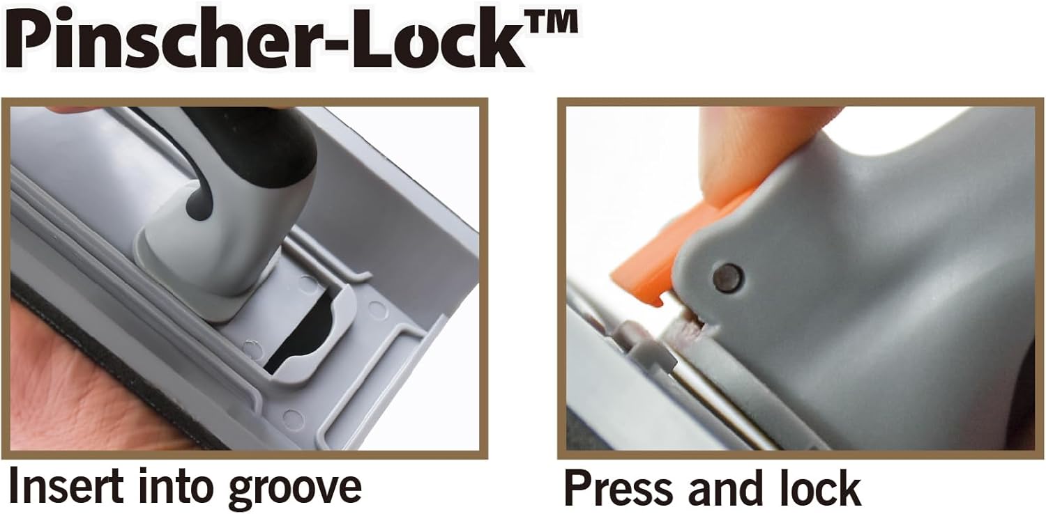 - Ergonomischer Griff: Komfortabler Gummigriff rastet mit einem Knopfdruck ein