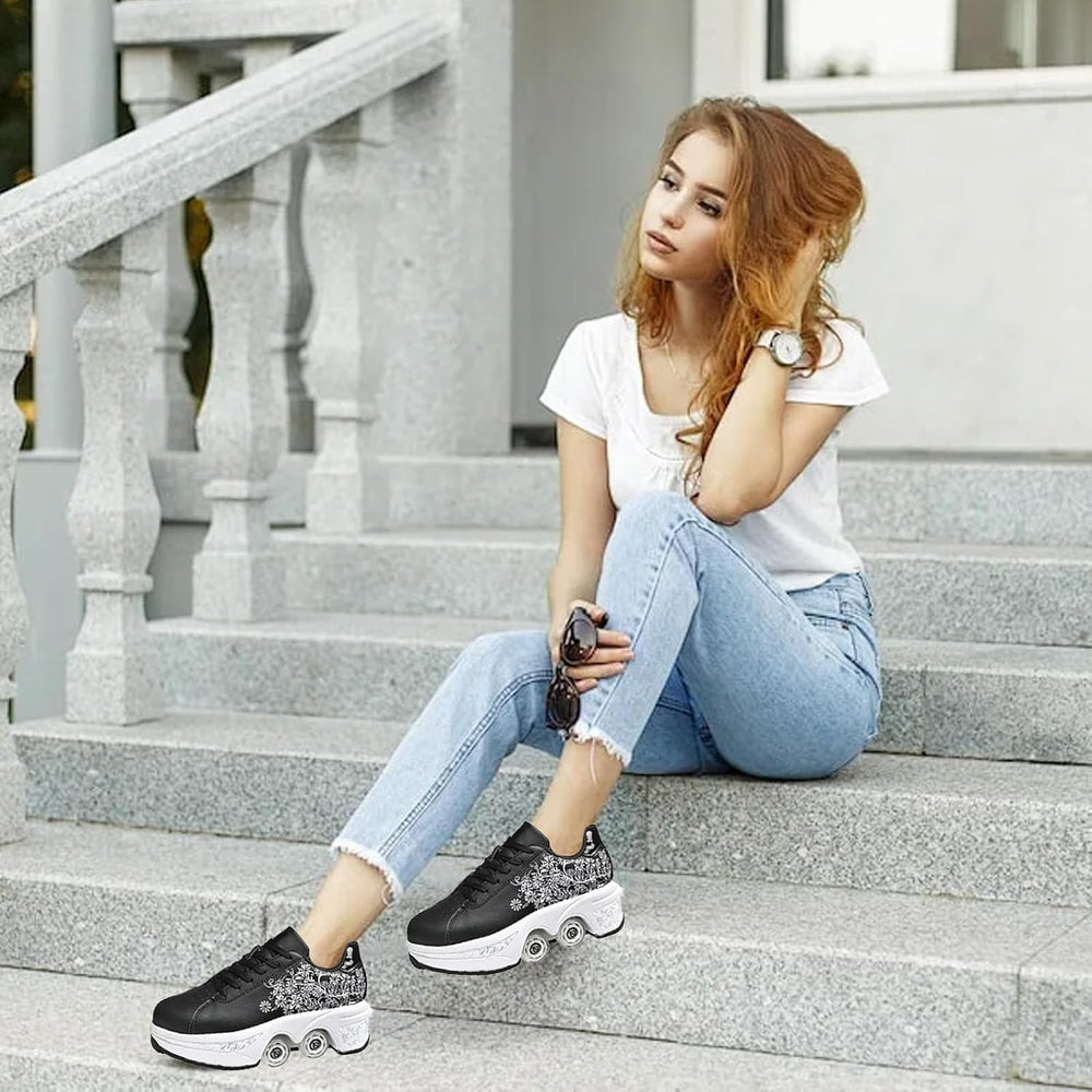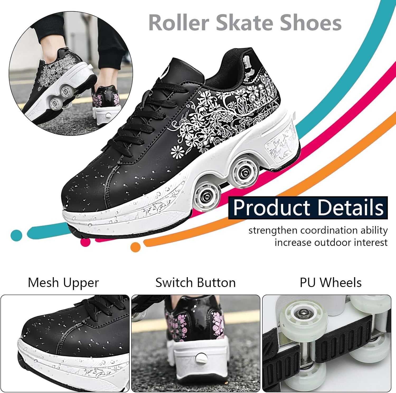 • 2 in 1 Deformation Roller Shoes Die kreative Sohle hat ein Paar versteckte Räder. Wenn Sie gleiten möchten, drehen Sie einfach den Schalter an der Ferse und schalten Sie das Lenkrad ein, um leicht von Parkurschuhen zu verwandelnden Schlittschuhen zu
