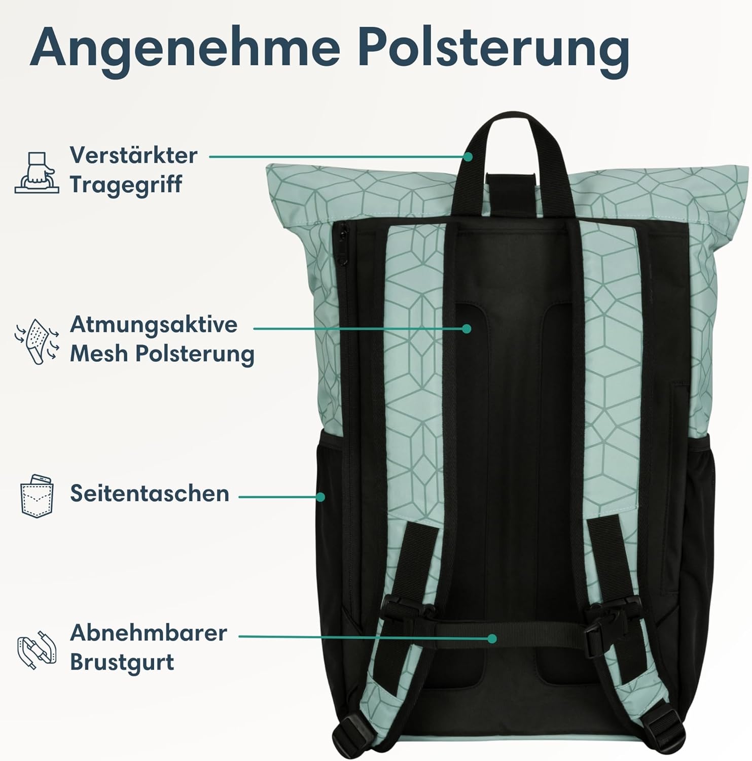 - MODERNER ALLROUNDER: Der LARKSON Roll Top Rucksack bietet viel Platz und ist ein praktischer Begleiter für Uni, Reisen & Freizeit. Die vielen zusätzlichen Fächer ermöglichen eine perfekte Organisation