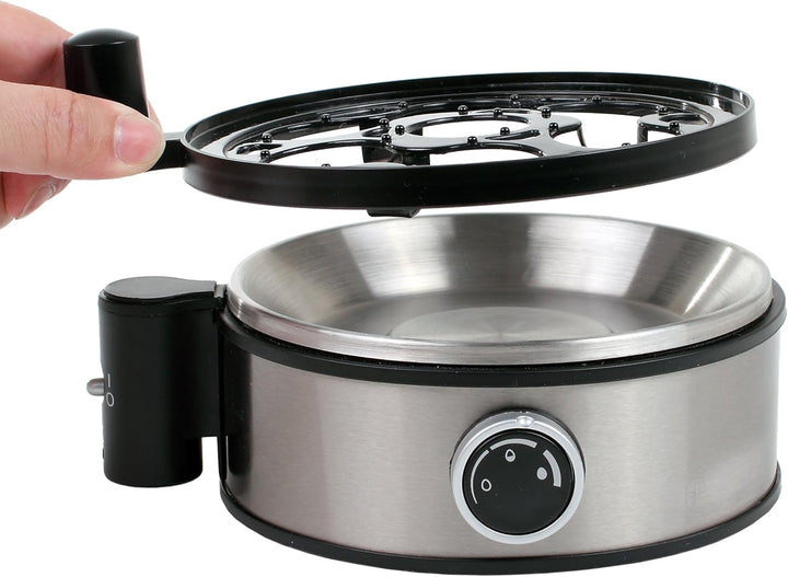 - pflegeleichte Heizschale aus Edelstahl, abnehmbarer Einsatz für 1-7 Eier
