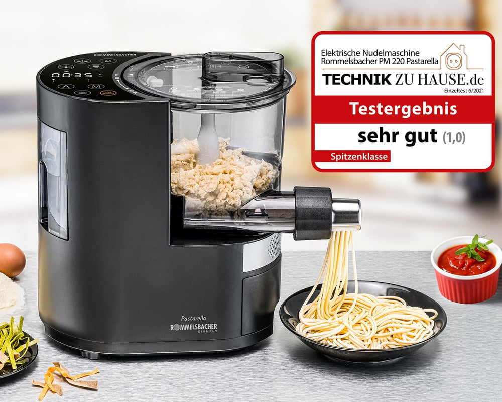 - elektronische Steuerung für beste Funktionalität und hohe Teigausbeute, integrierte Waage und gesteuerte Wasserzufuhr, für bis zu 800 g frische Nudeln, einfache Bedienung durch komfortable Bedienelemente und übersichtliches LED-Display