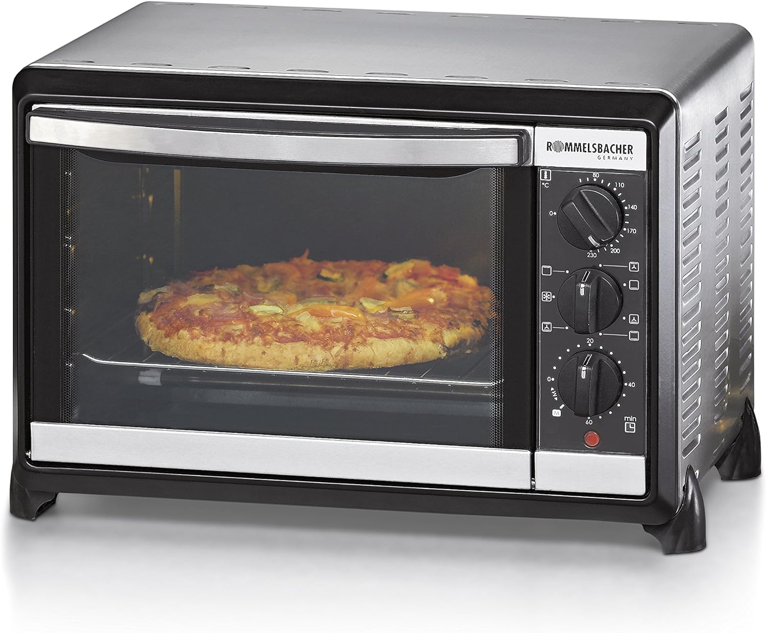 - Volumen: 18 Liter, für Backformen bis 25 cm Durchmesser, 4 Heizelemente aus Edelstahl für eine kurze Aufheizzeit