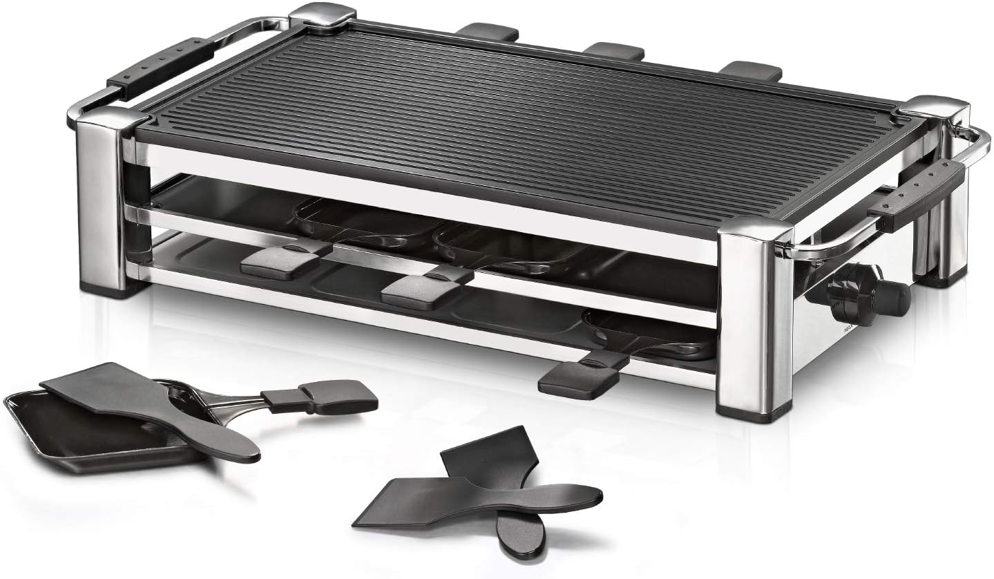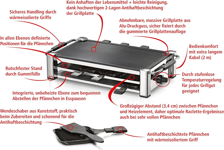 - STUFENLOSE TEMPERATUREINSTELLUNG: Egal ob Fleisch, Fisch oder Gemüse - durch die stufenlose Temperatureinstellung ist das Raclette für jedes Grillgut geeignet