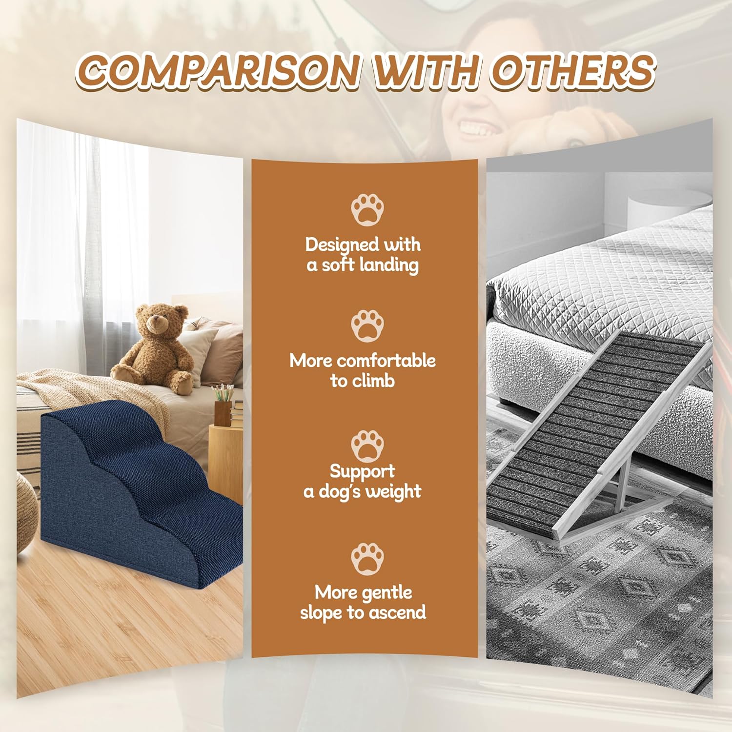 - Gelenkschonende Hilfe für kleine Hunde & Senioren: Unsere 3-stufige Hundetreppe wurde speziell entwickelt, um älteren, kurzbeinigen oder verletzten Haustieren den sicheren Zugang zu Sofa oder Bett zu ermöglichen – ohne Gelenkbelastung oder
