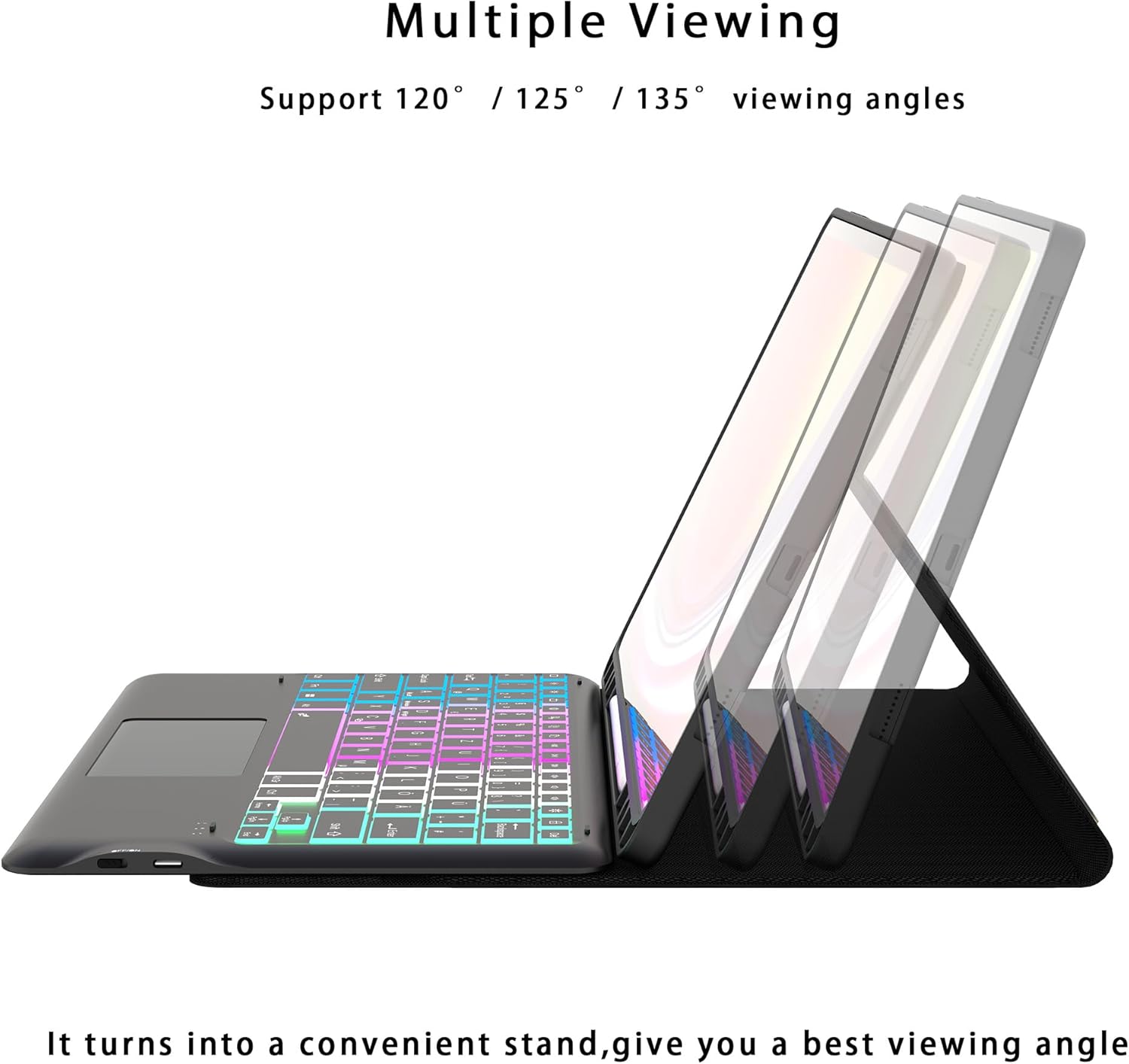 - 3-Winkel-Ständer Abnehmbare Tastaturhülle - Trennbares Design, mit dem Sie zwischen einem leichten Laptop und Ihrem Samsung Galaxy Tab S10+/S9 FE+/S9+ Plus wechseln können. Drei einstellbare Winkel 120° 125° 135° sorgen für einen bequemen