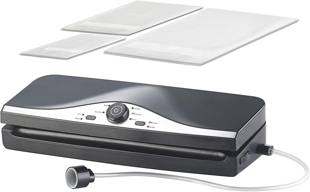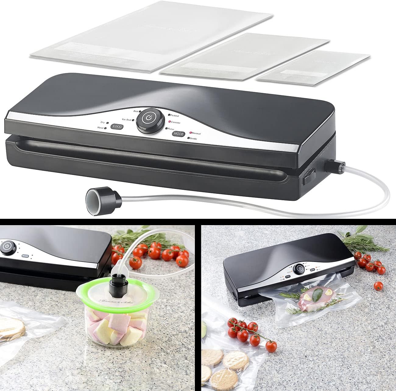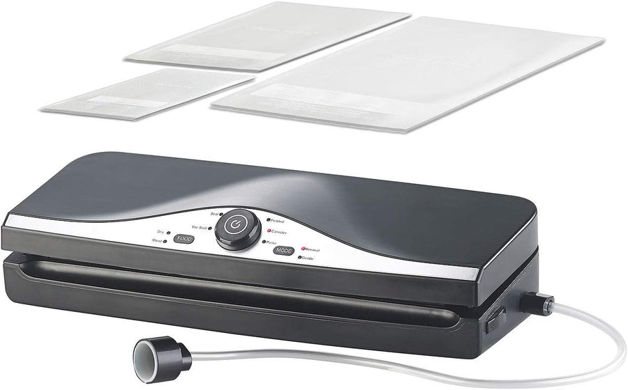 - Vakuumierer inkl. 15 Beuteln (5x 10 x 15 cm, 5x 20 x 30 cm, 5x 28 x 40 cm), Vakuumier-Schlauch mit 2 Aufsätzen, Ersatz-Abdichtring und deutschem Handbuch. Vakuumierer für Vakuum-Beutel - Ausserdem relevant oder passend zu: Frischhaltedosen,