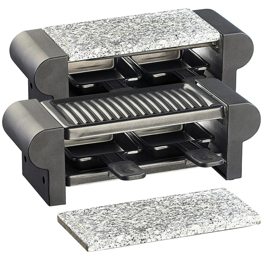 - Inklusive 4 Pfännchen, 2x heissem Stein, 2x Grillaufsatz und deutscher Anleitung. Raclette-Grillplatten - Ausserdem relevant oder passend zu: Raclett, Pfanne, Grill, Pizza, BBQ