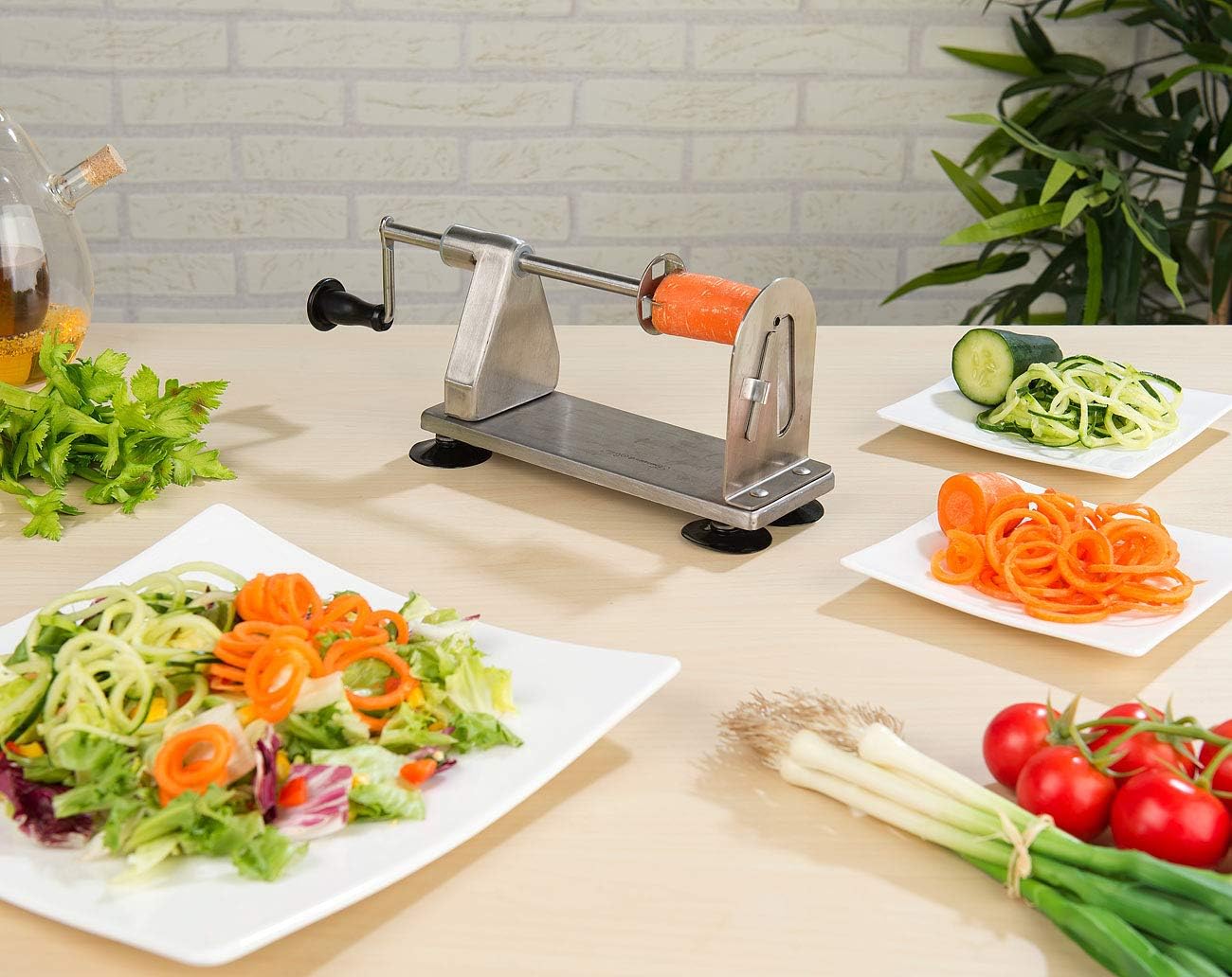 - Ideal zum Schneiden von Spiralen und Scheiben • Extra-Klinge für das Herstellen von Gemüse-Spaghetti • Rutschfester Stand dank Saugnäpfen