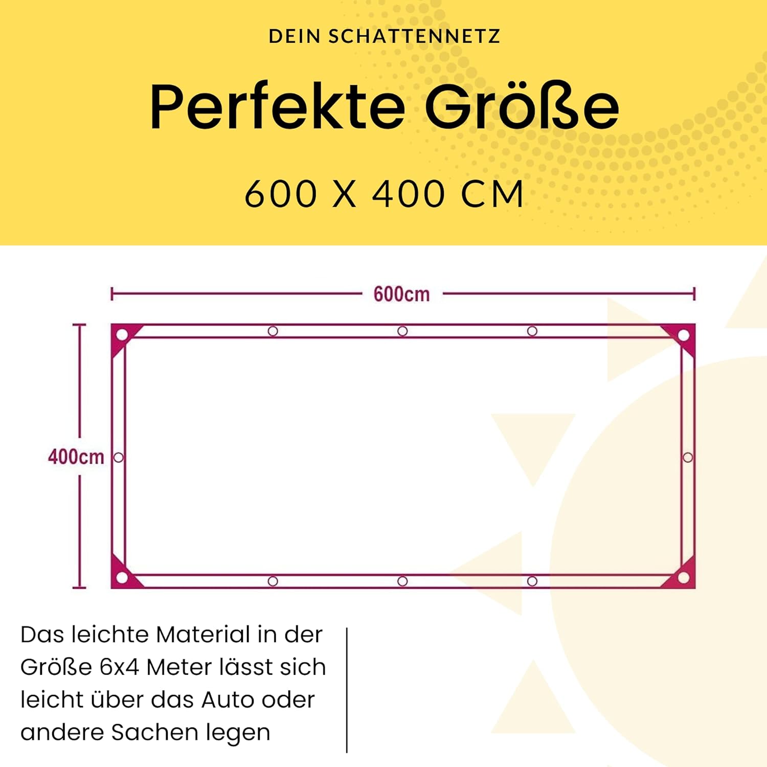 - 🔥 𝗛𝗜𝗧𝗭𝗘𝗥𝗘𝗗𝗨𝗭𝗜𝗘𝗥𝗨𝗡𝗚 - Kein Parkplatz im Schatten gefunden? Das Alunetz Hitzeschutz in der Grösse 600x400cm ist der perfekte Schattenparkplatz zum Mitnehmen. Premium Schattennetz auto 4x6