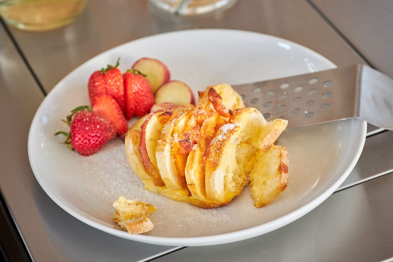 - Überschüssiges Fett kann aufgefangen werden, ohne dass dieses ins Feuer tropft und einen Fettbrand auslöst - zum Einsatz unter einem Drehspiess bestens geeignet