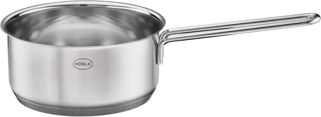 - RÖSLE Basic Line Topf-Set 4-tlg.: 3 Universaltöpfe und eine Stielkasserolle zum Anbraten von Fleisch und zum Kochen von Gemüse oder Teigwaren - funktionelles Kochgeschirr für die Grundausstattung