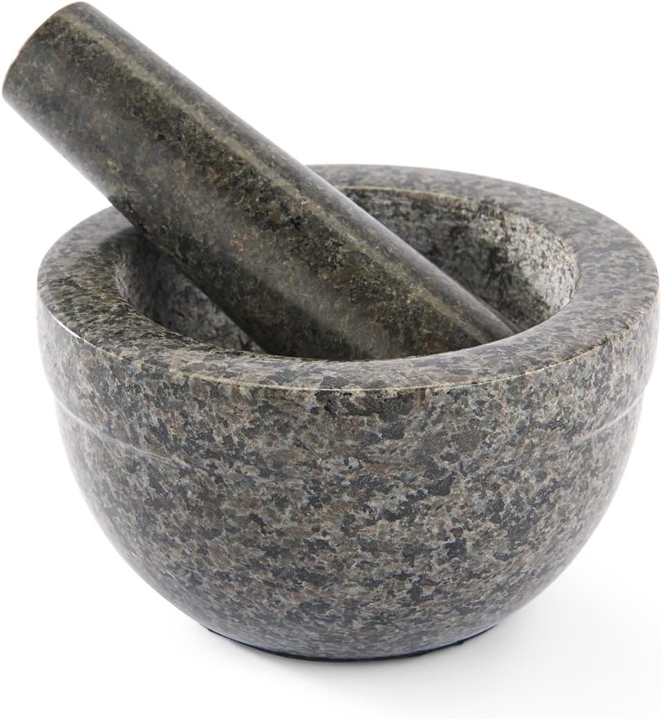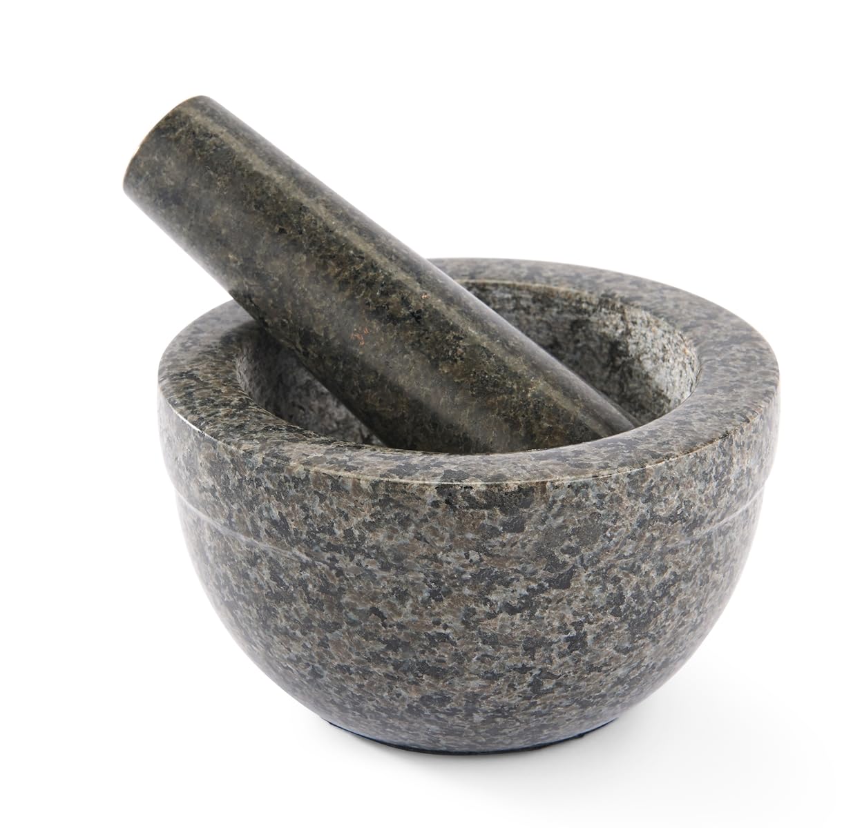 - Verlässlich: Der Mörser besteht aus schwarzem Granit, was diesen zu einem zuverlässigen Werkzeug macht - im Gegensatz zu Porzellan und Keramik sind so Krafteinwirkungen wie beim Zerstossen von harten Körnern kein Problem