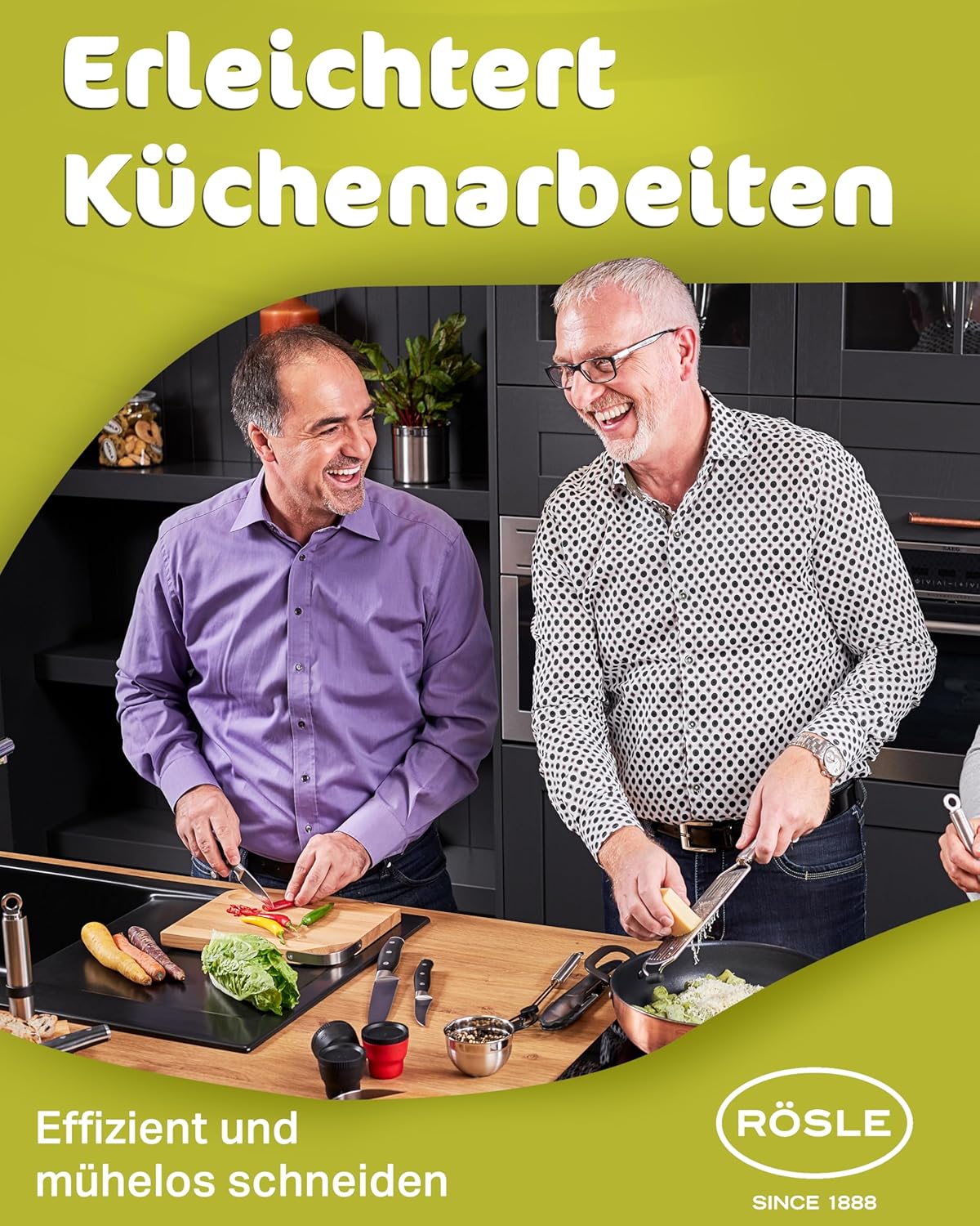 - Zucchini in Scheiben, Zwiebeln in feine Ringe oder ein klassisches Gulasch in Würfel schneiden, für die RÖSLE Messer mit Präzision geschliffenen Klingen kein Problem - Gemüsemesser (9 cm) zum Schneiden der unterschiedlichsten Gemüsesorten - Kochmesser (20 cm) zur Zubereitung von Fleisch, Gemüse oder Obst - Universalmesser (13 cm) für Tomatenscheiben und Brötchen - unverzichtbare Alltagshelfer in jeder Küche