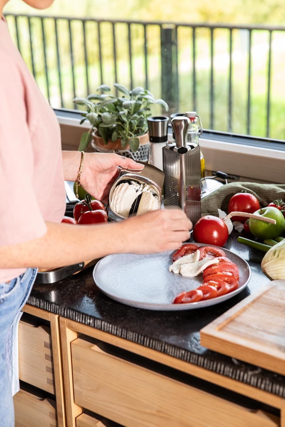 • RÖSLE Tomaten- und Mozzarellaschneider - macht frische, gesunde Ernährung mühelos möglich: Der hochwertige Tomaten- und Mozzarellaschneider, ideal zum Zerschneiden von Tomaten und Mozzarella in gleichmässige Scheiben - egal ob für die leckere