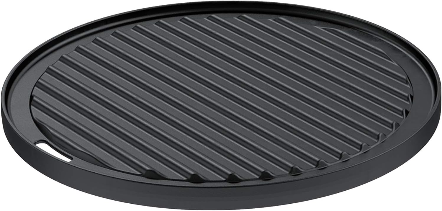 - Produkt 2: Die universelle Grillplatte kann beidseitig verwendet werden - bei Nutzung der geriffelten Seite kann das typische Rautenmuster auf Fleischstücken gebraten werden - kleine Grillstücken, welche sonst leicht durch den Grillrost fallen können