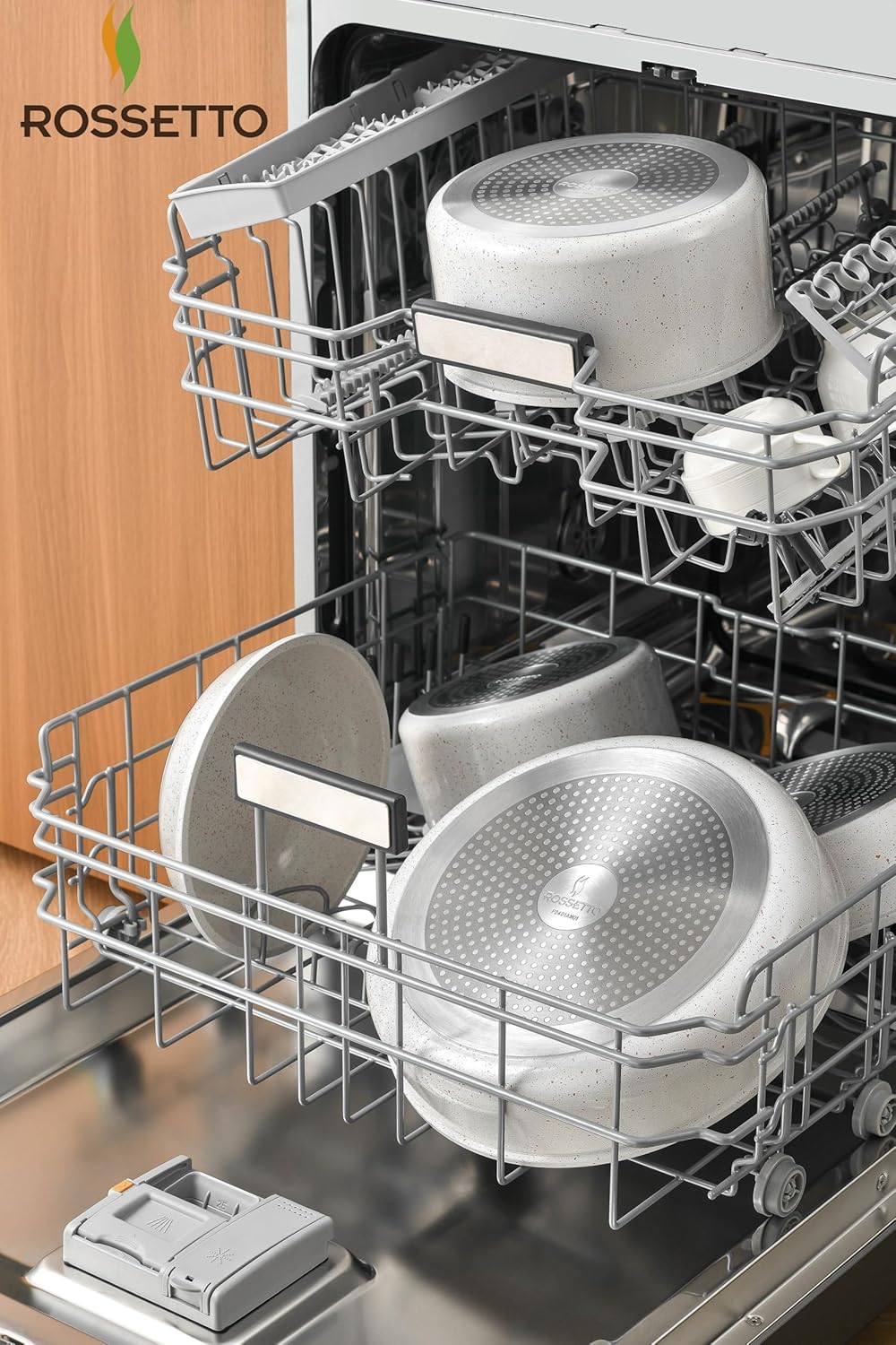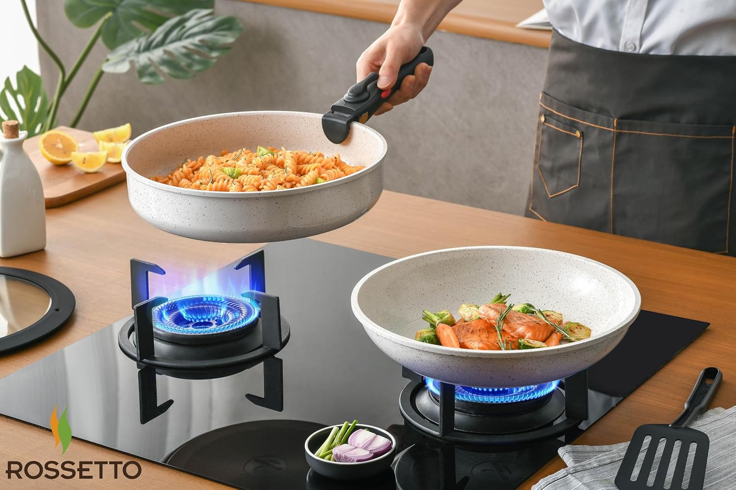 - Frei von PFOA, PTFE, PFAS: Deutscher GREBLON-Keramikbeschichtung: ROSSETTO Aluminiumpfannen ist aus Frankreich. Mit Keramikbeschichtung ist es langlebig und verfügt über hervorragende Antihafteigenschaften.